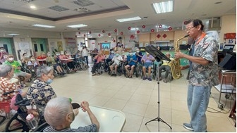 新竹榮家為豐富住民精神生活並促進身心健康,邀請輔導會第七處前處長退役陸軍少將張志範,以薩克斯風吹奏動人樂章,為養護堂長輩們帶來心靈上的撫慰,樂享美好幸福秋日時光。