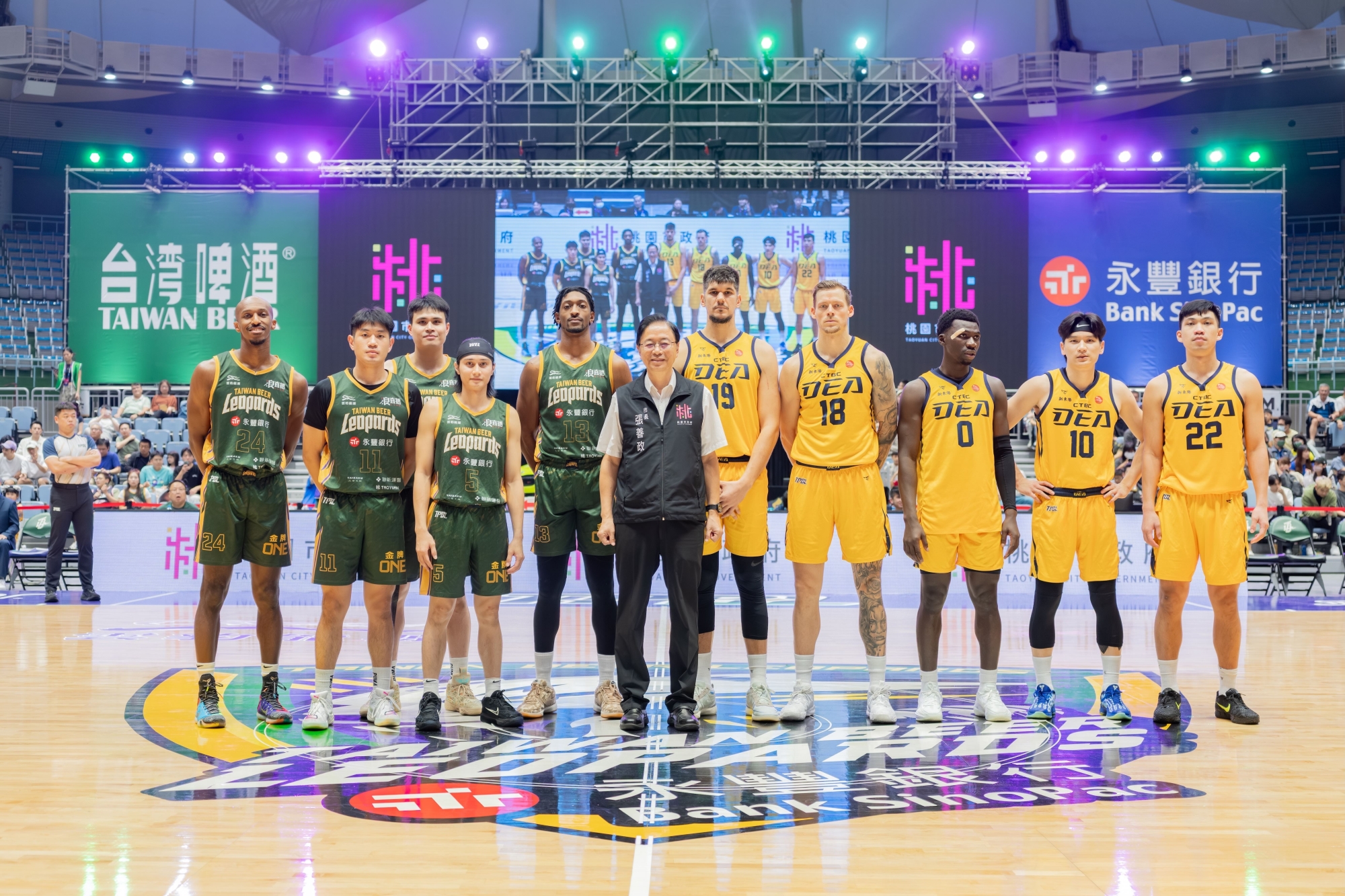 桃園市長張善政今(9)日下午前往桃園區,出席「2025-26 年 TPBL 聯盟例行賽」,桃園台啤永豐雲豹主場開幕週表示,永豐雲豹本季開賽以來氣勢如虹、連戰皆捷,展現堅強實力與團隊凝聚力,目標就是要拚下總冠軍,將榮耀帶回桃園。