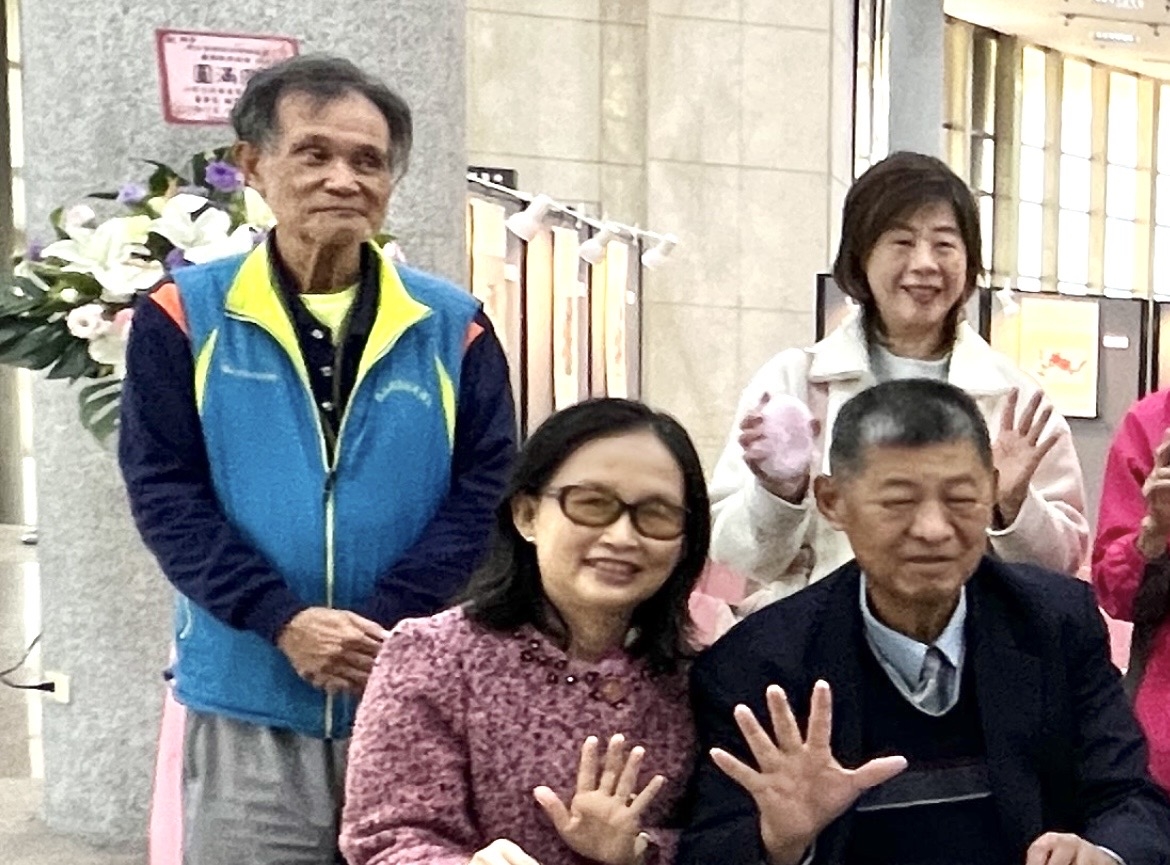 陽明交通大學浩然圖書館開館退休館員,青溪後幹班八十期朝山後備軍人組長林家榮,特別為這群義賣快樂的愛心藝術家義行表現喝采。