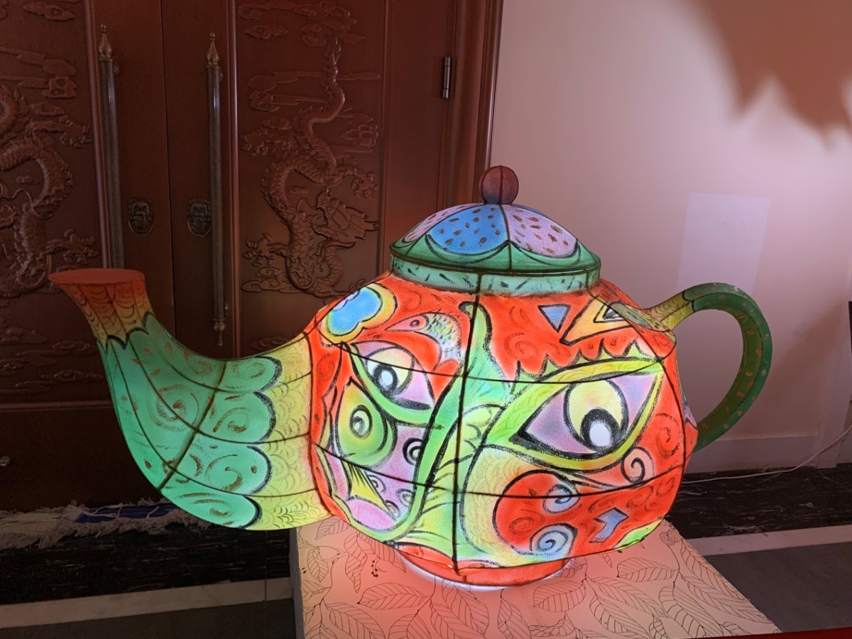 台湾翁贤良制作的彩绘茶壶灯也在展厅展示。