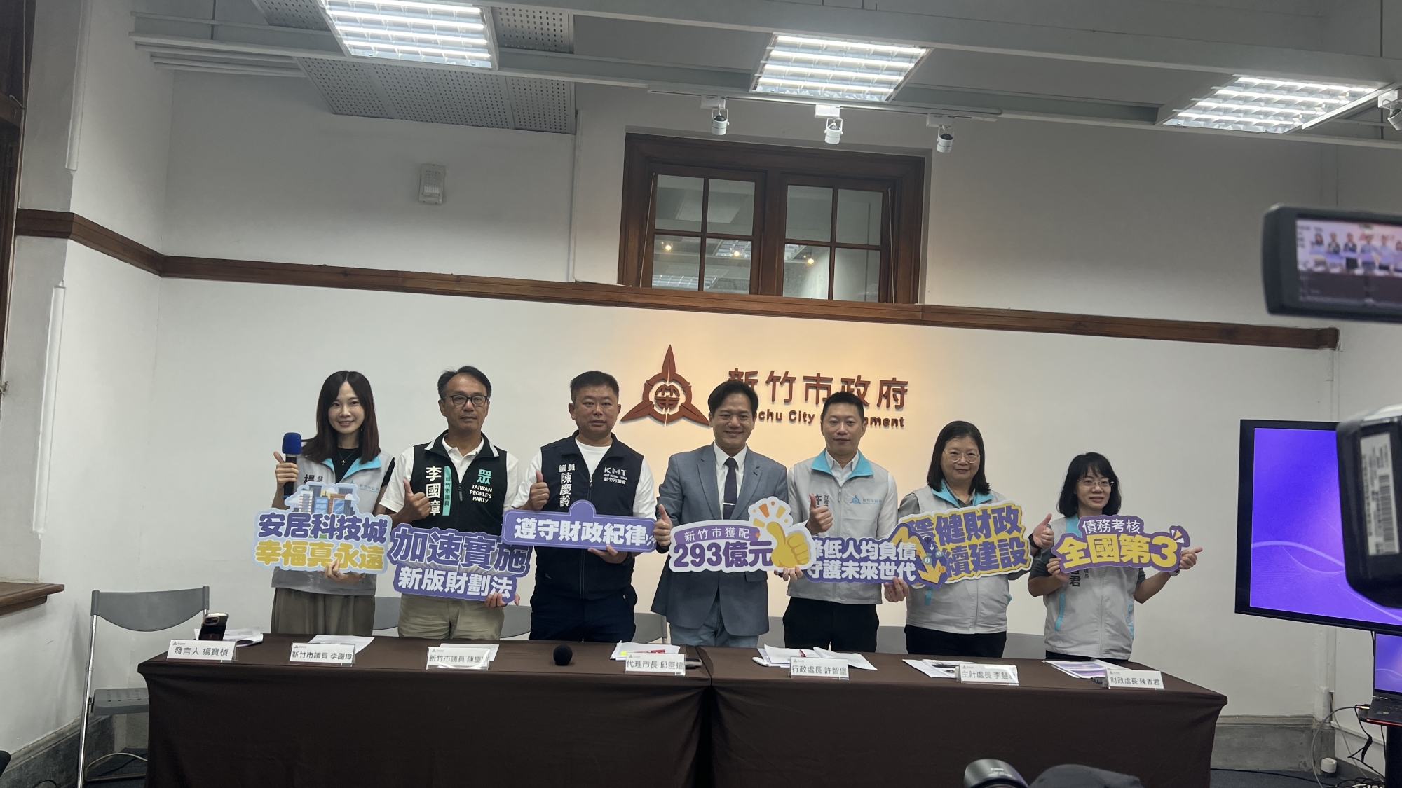 新竹市政府今(25)日舉辦「安居科技城 幸福真永遠:財政紀律施政成果記者會」,由代理市長邱臣遠率領財政處長陳香君、主計處長李慧君以及行政處長許智堡,向市民公布市府兩年半來成功減債68億元的成績,以及新版財政收支劃分法新增財源用途規劃。