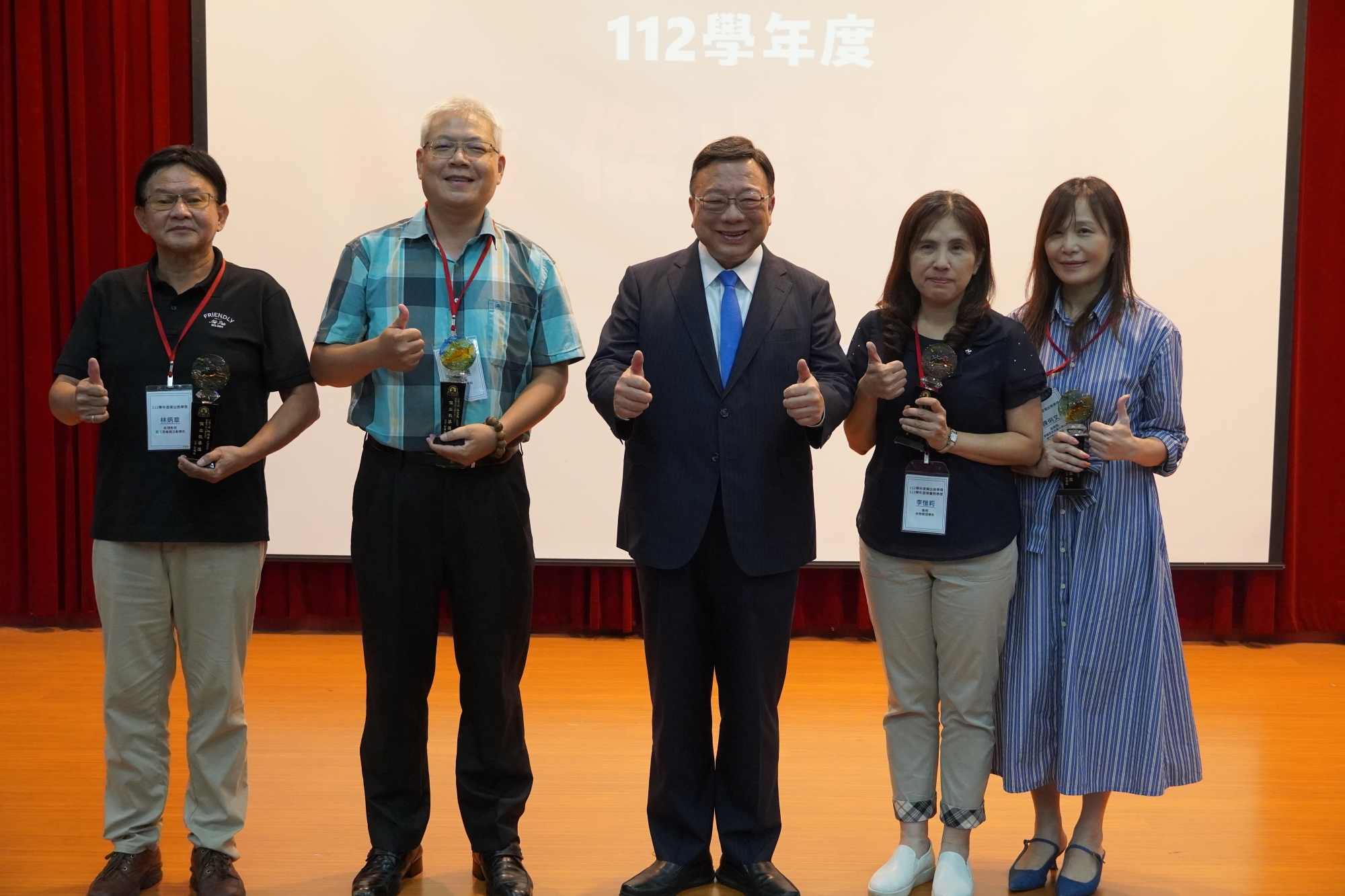 表揚典禮於教師節前夕溫馨登場,頒發112學年度傑出教學獎予四位優秀教師,包括觀光與會展活動學系林炳章教授、行政管理學系張筵儀副教授、英國西英格蘭大學企業管理雙學士學位學程陳俐文副教授,以及財務管理學系李愷莉教授。李愷莉教授更於113學年度再度獲頒榮譽教學獎,展現其持續精進的教學精神與深厚的教育熱忱,深受學生肯定與敬重。