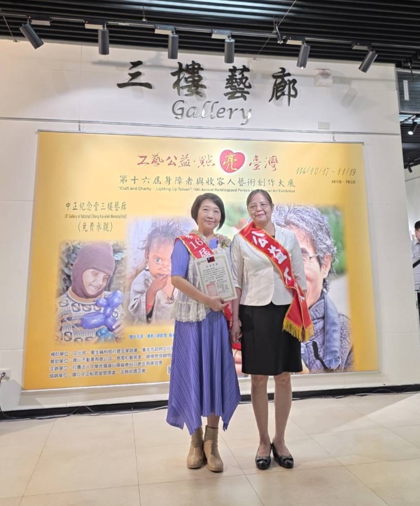 主辦單位,社團法人中華民國身心障礙者自立更生創業協會創會長劉天富,特別介紹施雪紅療癒繪畫藝術家,每一屆的展覽,出錢出力,忍住身體的疼痛,卻畫出來的作品,溫馨感動,療癒人心,不僅觸動每一個人的心扉,更令人看了歡喜。