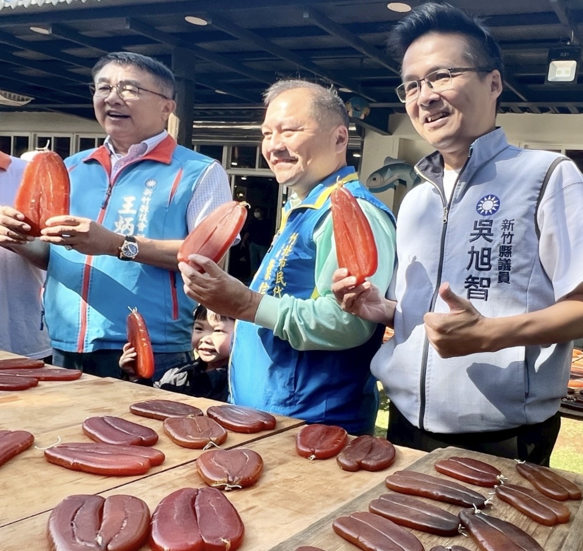 新竹縣議會副議長王炳漢、竹北市代會副主席葉信輝和議員吳旭智、蔡志環,異口同聲讚揚竹北烏魚子,經過流傳千年全球著名的新竹風加持,自然風乾的烏魚子風味絕佳,也是日本烏魚子饕客的最愛。