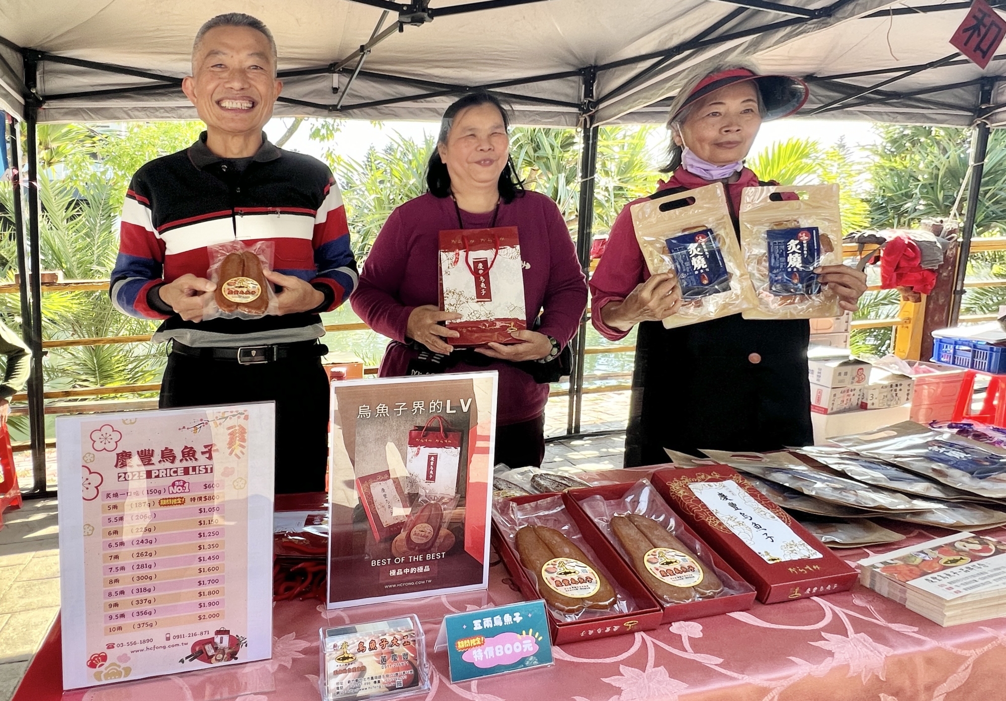陳見賢(左)與地方人士為漁民推銷烏魚子 何高祿攝