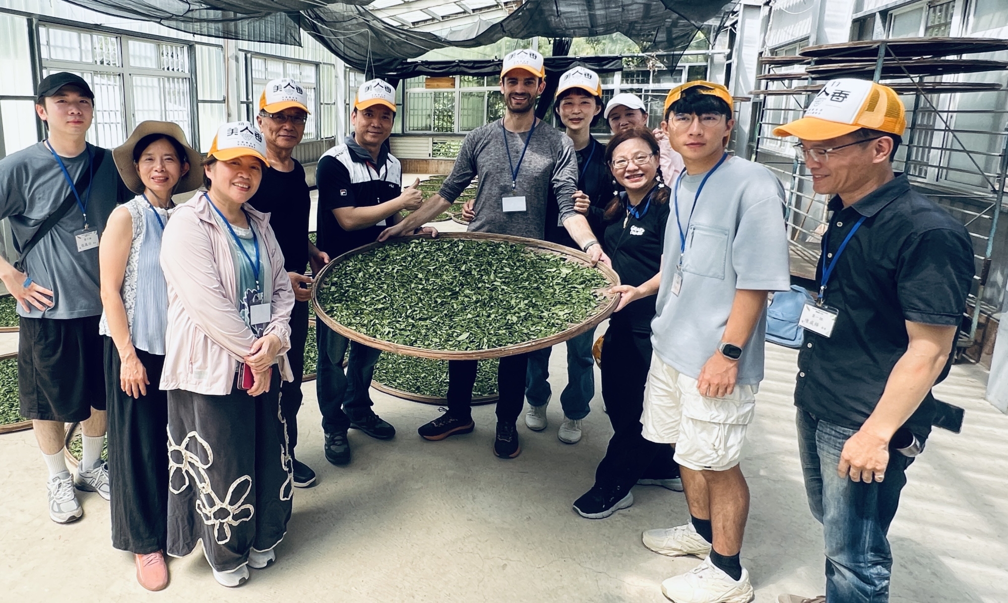 艾荷西(中)和台北洪富美(右三)等遠方客熱心學製茶    何高祿攝