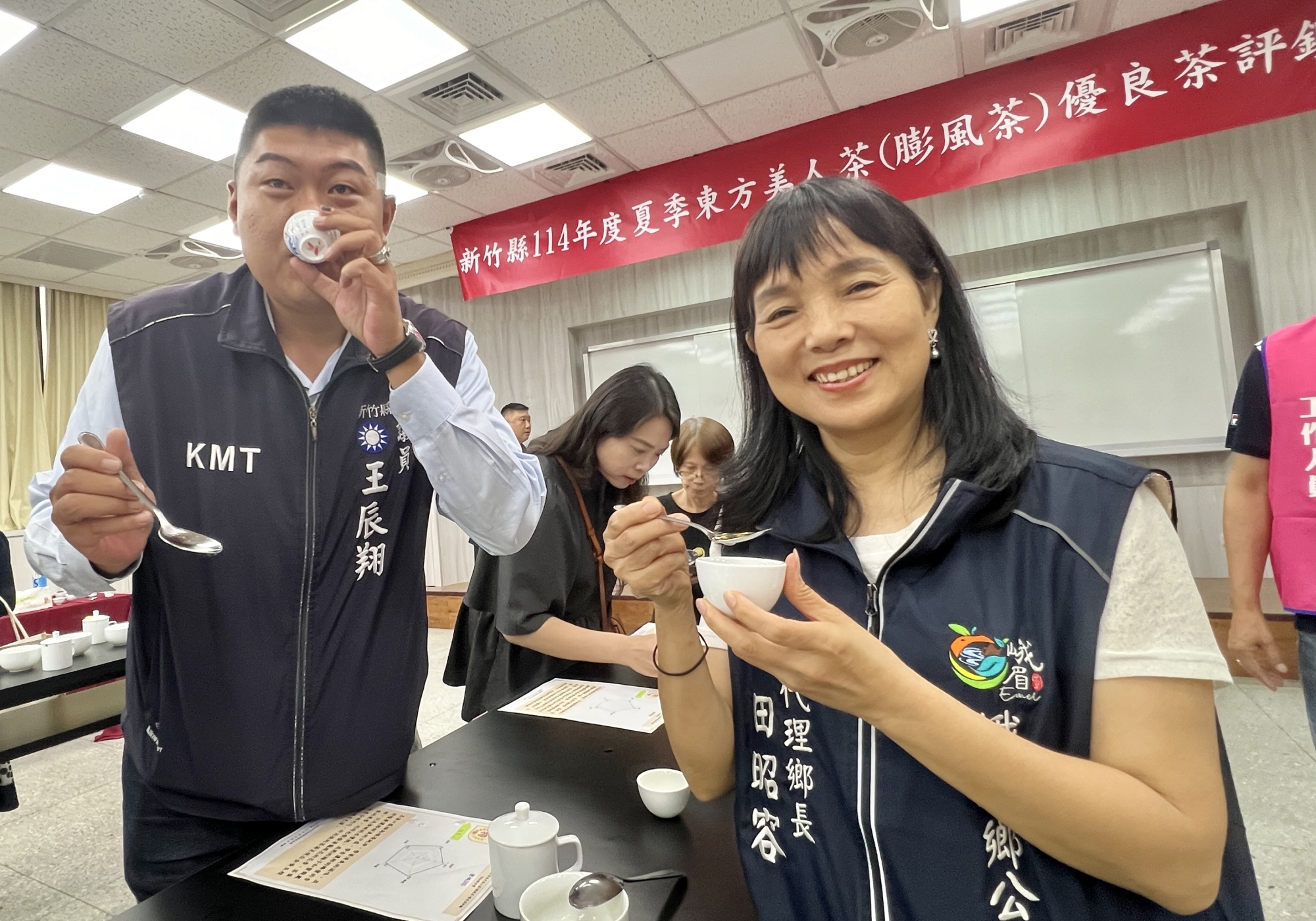 新竹縣長楊文科今(14)日親自前往峨眉推廣遊程,品嚐6款台灣茶,包含碧螺春、高山烏龍、包種茶、東方美人、紅烏龍、小葉紅茶,體驗茶香風味。現泡茶搭配東方美人茶冰淇淋與茶凍,讓他驚呼「真的好好食!」,新竹縣擁有豐富的自然景觀和深厚的人文底蘊,逐風趣、好好玩,誠摯邀請大家一起來!