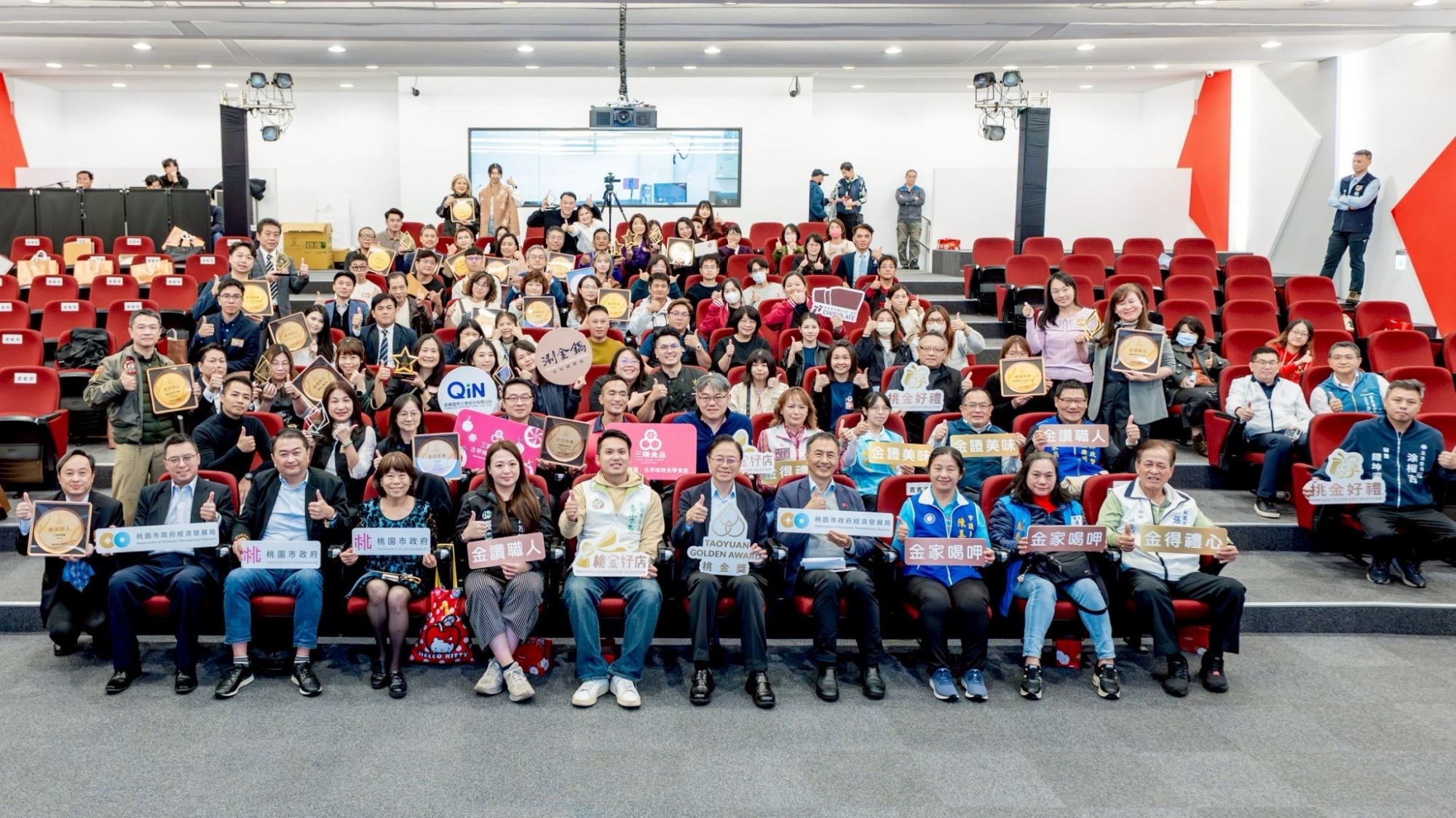 桃園市長張善政今(9)日下午於市府綜合會議廳,出席「桃金好禮暨好店頒獎典禮」表示,今(114)年共有逾700家商家經民眾推薦參與選拔,經全民票選與專業評審層層把關,最終選出40家在地優質好店,再由3位神祕客委員,深入實訪評選出11家特別獎得主。桃園大街小巷匯聚眾多媲美米其林的美食與特色店家,不少隱藏版店家即使僅提供外帶仍大排長龍,展現桃園獨特的在地風味與產業活力,亦是城市的驕傲。