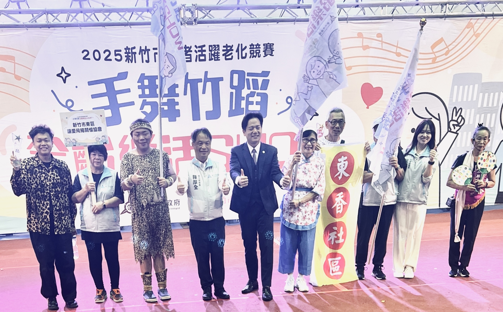 風城「2025手舞竹蹈·全齡樂活SHOW」長者活躍老化競賽,東香社區發展協會榮獲「金耀之星獎」、讓愛飛揚關懷協會獲頒「銀光閃耀獎」、東區志工巡防協會榮獲「銅星樂活獎」,另有深耕關懷協會、慈濟新竹靜思堂C級巷弄長照站、頂竹社區發展協會、水田社區發展協會、康樂社區發展協會、水源社區發展協會等六支隊伍獲得「樂齡活力獎」的肯定。