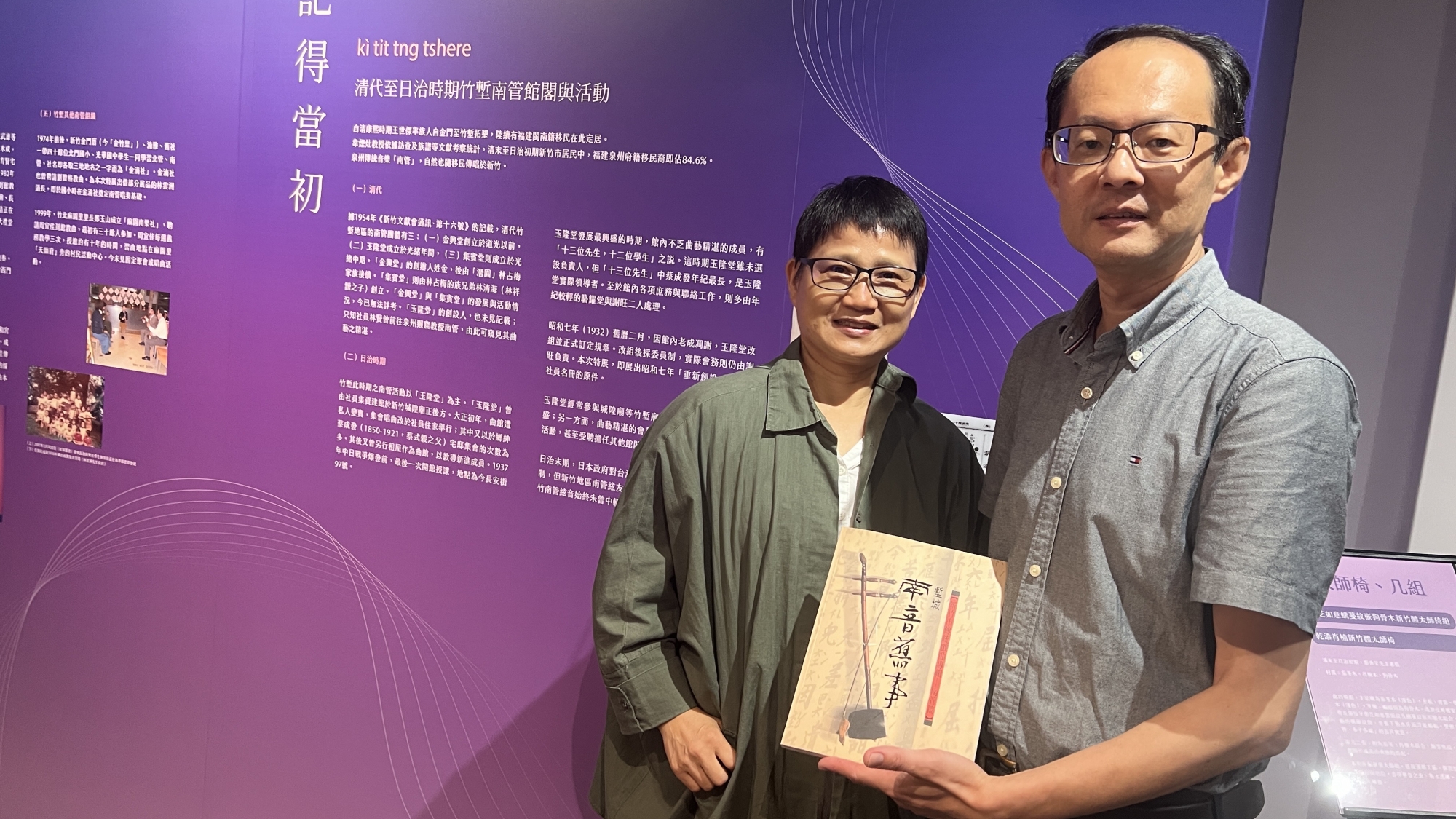 金長和媽祖水仙文物館13日舉辦「尋覓知音:新竹南管文物展」,期盼能贏得多方共鳴,集合更多力量和資源,踏實傳承發揚南管文化,開幕典禮賓客雲集,賀喜聲不絕於耳認同支持尋覓知音行動。