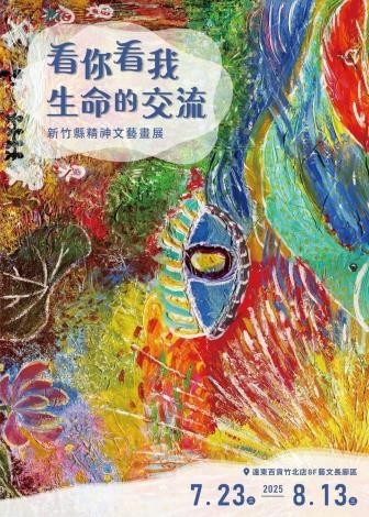 為讓大眾對精神疾患及心理健康議題能多一些了解,新竹縣政府衛生局新埔社區心理衛生中心辦理「看你看我 生命的交流」精神文藝畫展,即日起至8月13日在遠東百貨竹北店展出57幅精神病友畫作,以「別人眼中的我」、「我眼中的自己」為主題,歡迎大家踴躍參觀,衛教互動打卡可獲得小禮品,每日限量200份。