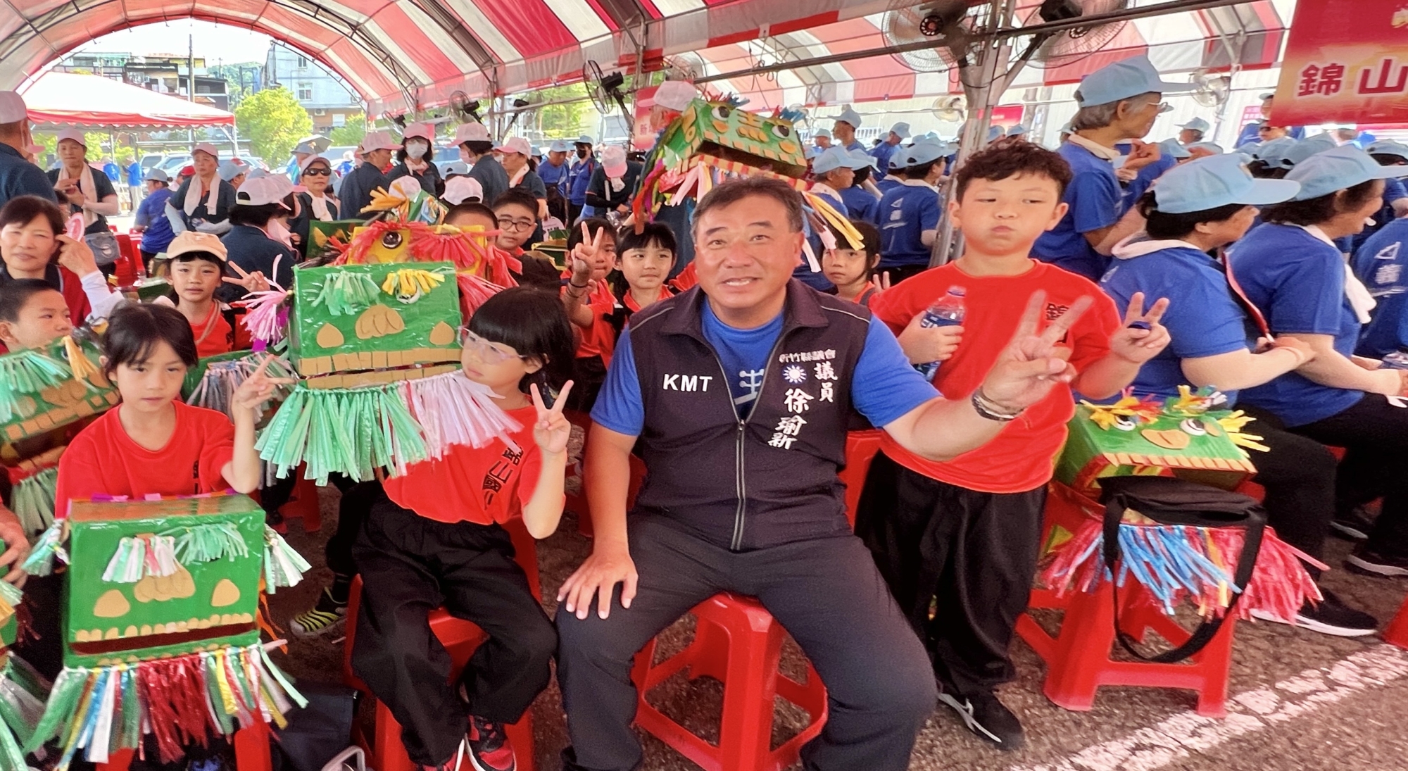 關西選出縣議員徐瑜新(前中)給鄉親加油打氣 何高祿攝