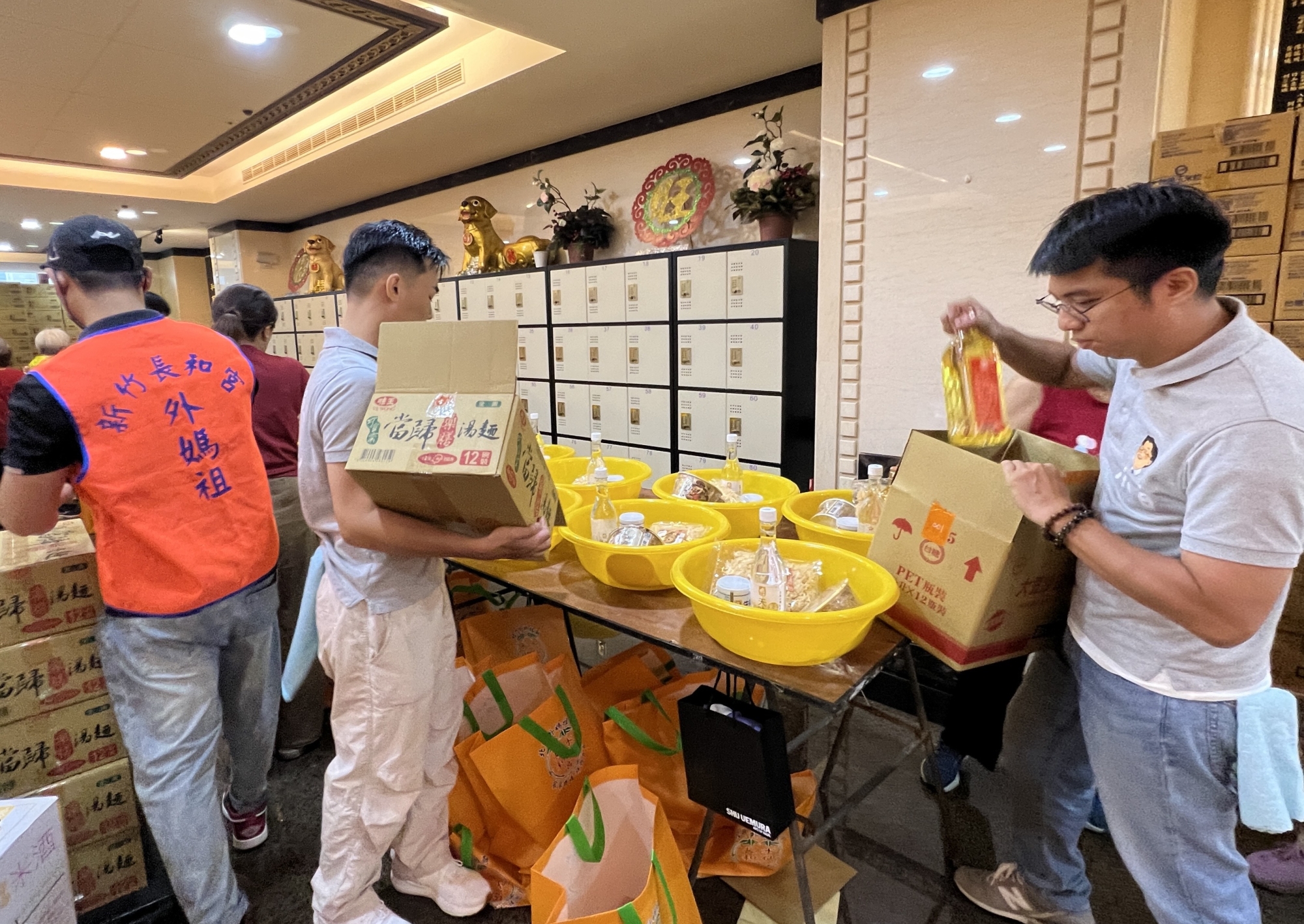 長和宮主委楊金土率領志工打包祭品 何高祿攝