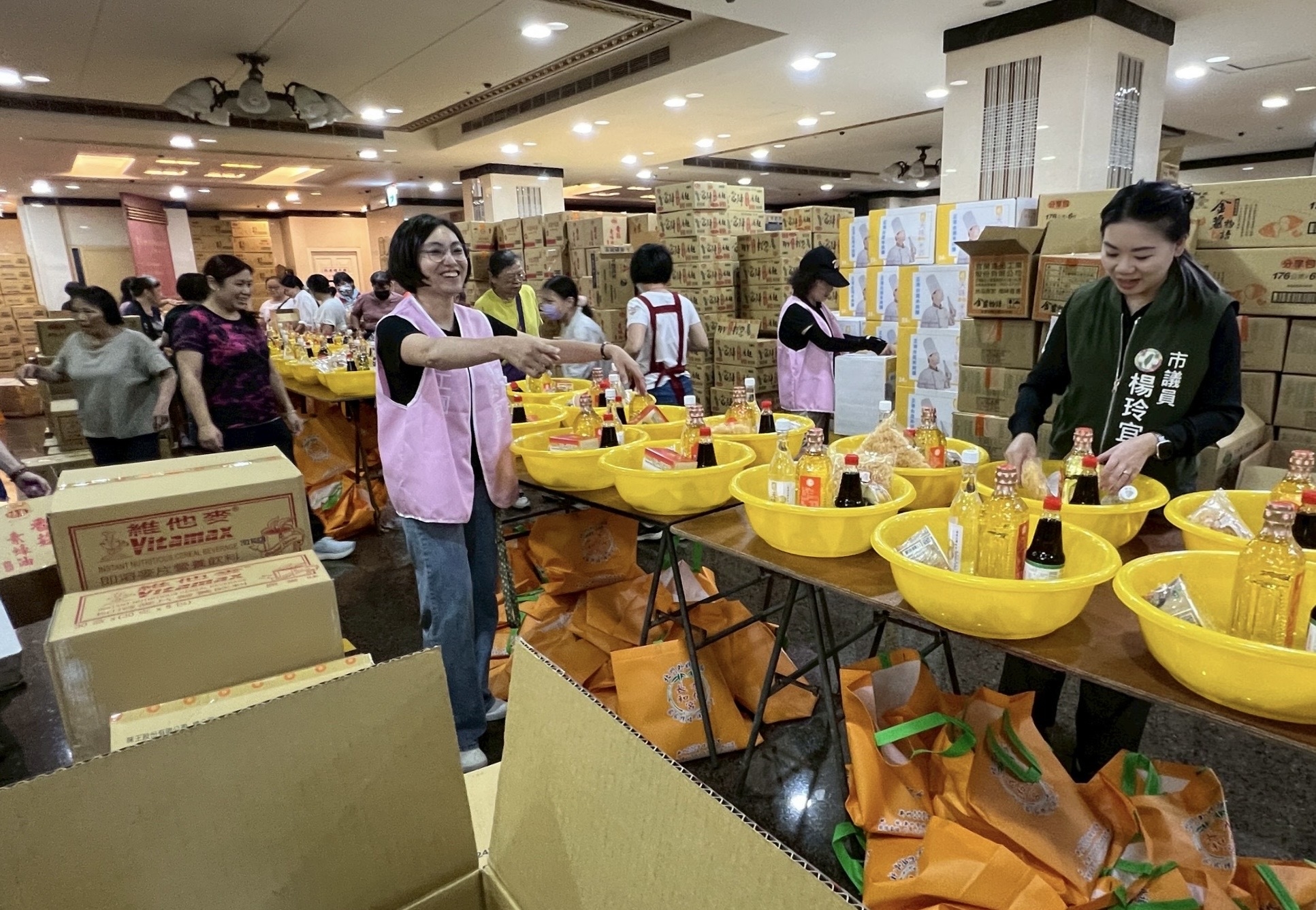 議員楊玲宜(右)團隊自動參與包裝 何高祿攝