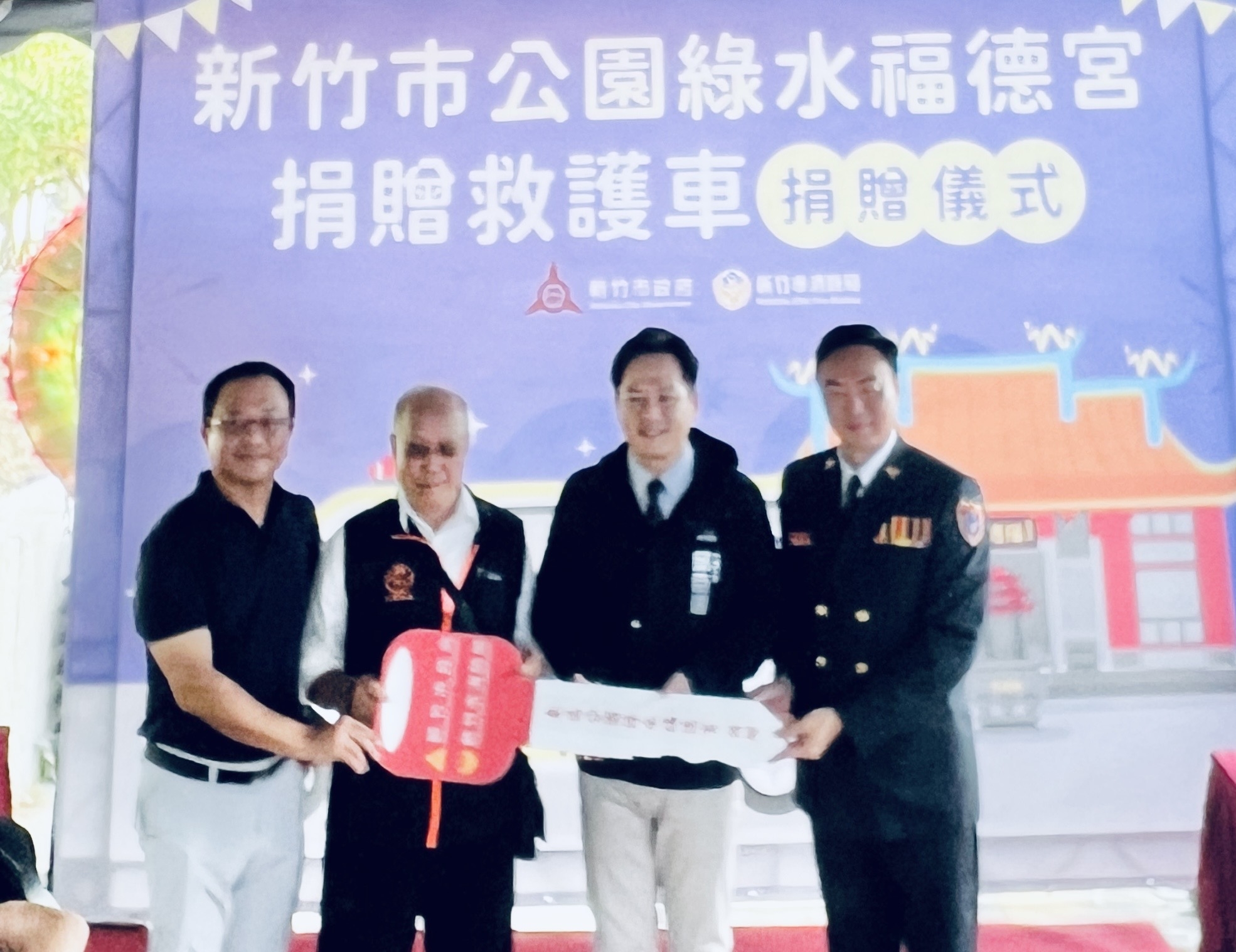 竹市公園綠水福德宮熱心公益,發揮無私大愛精神,捐贈1輛全配備救護車給新竹市政府,車輛打造金額407萬9千元。