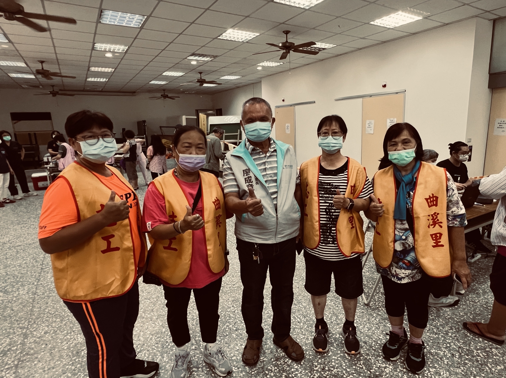 竹市91場社區接種站及64場校園流感及新冠接種,社區樂觀其成,今天下午曲溪里開打,里長廖成章帶領社區義工,熱忱參與社區保健引導行列,方便社區民眾循序漸進接種,深受好評。