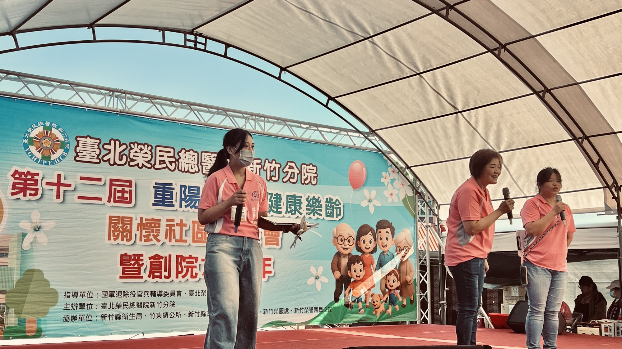 臺北榮民總醫院新竹分院「第十二屆重陽敬老 健康樂齡關懷社區園遊會」於九九重陽節之際,18日(星期六)上午08:00-12:00,由院長陳曾基帶領院內全體同仁,假竹東鎮中心「戲曲公園(中興河道廣場)」,辦理「第十二屆 重陽敬老 健康樂齡」關懷社區園遊會,大竹東鄉親扶老攜幼踴躍同樂。