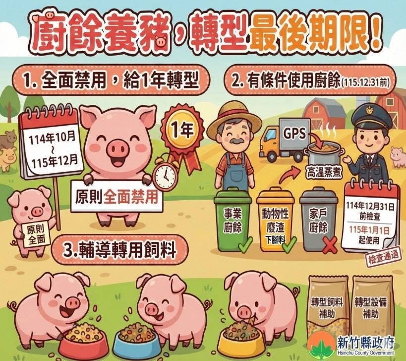 竹縣廚餘養豬配合中央115年底全面轉用飼料 轉型期間加強查核、監控作業