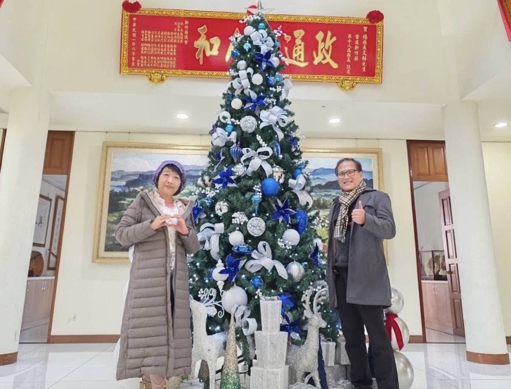文化局團隊親自到施雪紅藝術家府中挑選,讓整個縣府公館耳目一新,療癒溫暖,並搭配聖誕佳節,與元旦讓人倍感溫馨氣氛。