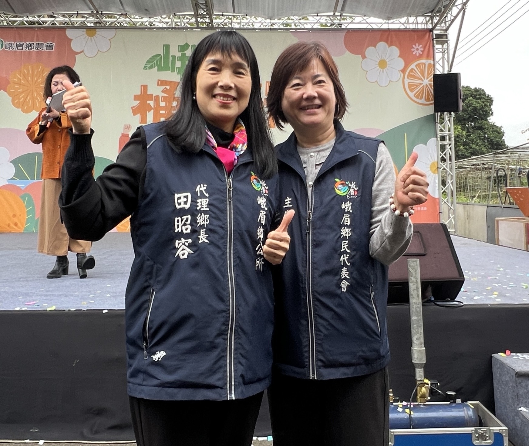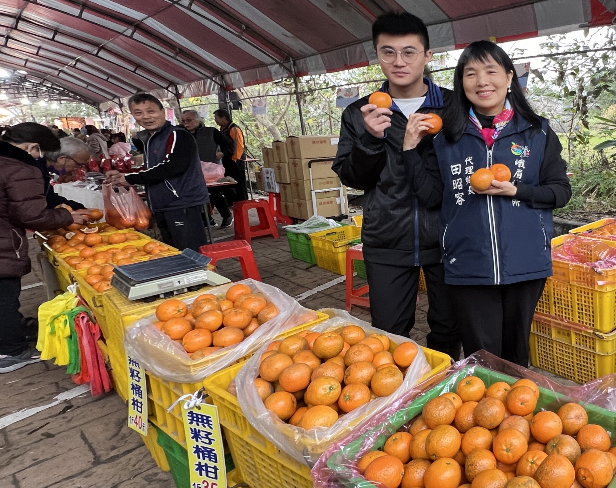 峨眉代鄉長田昭容與鄉代會主席温修汝共同出席為峨眉商機打拚,峨眉鄉憑藉穩定的氣候條件與良好土壤環境,孕育出果香濃郁、口感酸甜平衡的桶柑,是地方重要農產之一。今年桶柑節不僅於展售形式,進一步結合體驗與教育內容,讓民眾能「看得到、做得到,也學得到」。