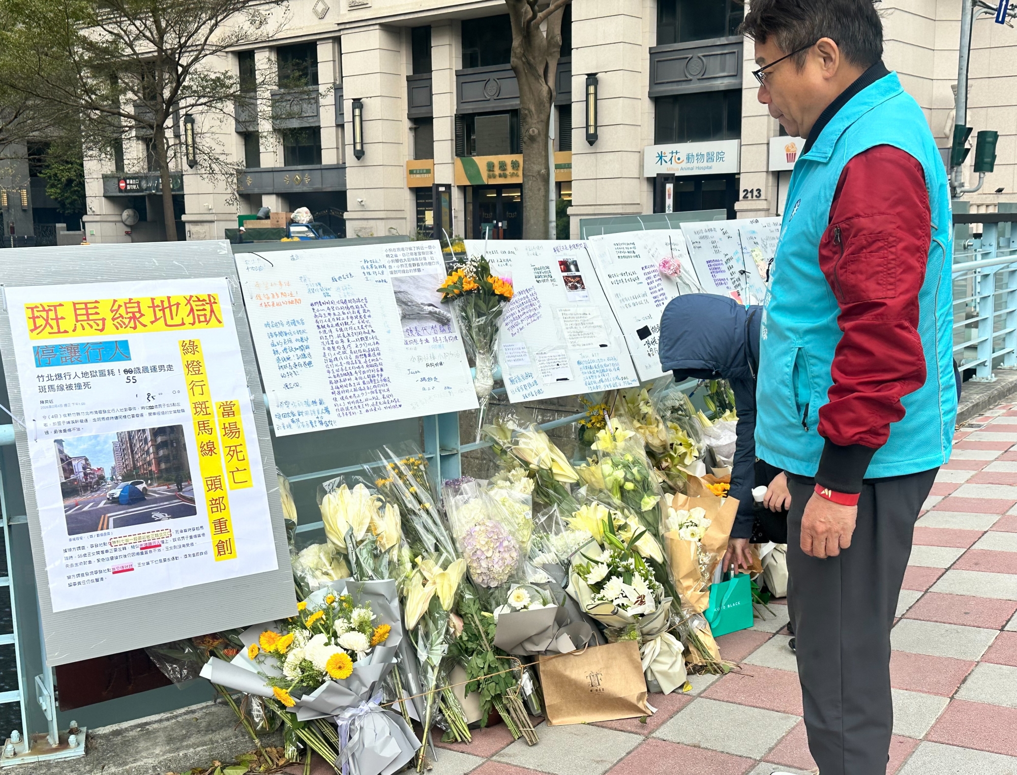 杜文中前往事故地點致意,看著原本應是市民日常通勤、散步的平靜街道,如今卻成了奪走人命的悲劇現場,表示:「看到現場滿是悼念花束和親友的留言,心裡真的很沈重。斑馬線本該是行人過馬路時『最安全』的位置,可就是在這裡,有人失去了寶貴的生命。」