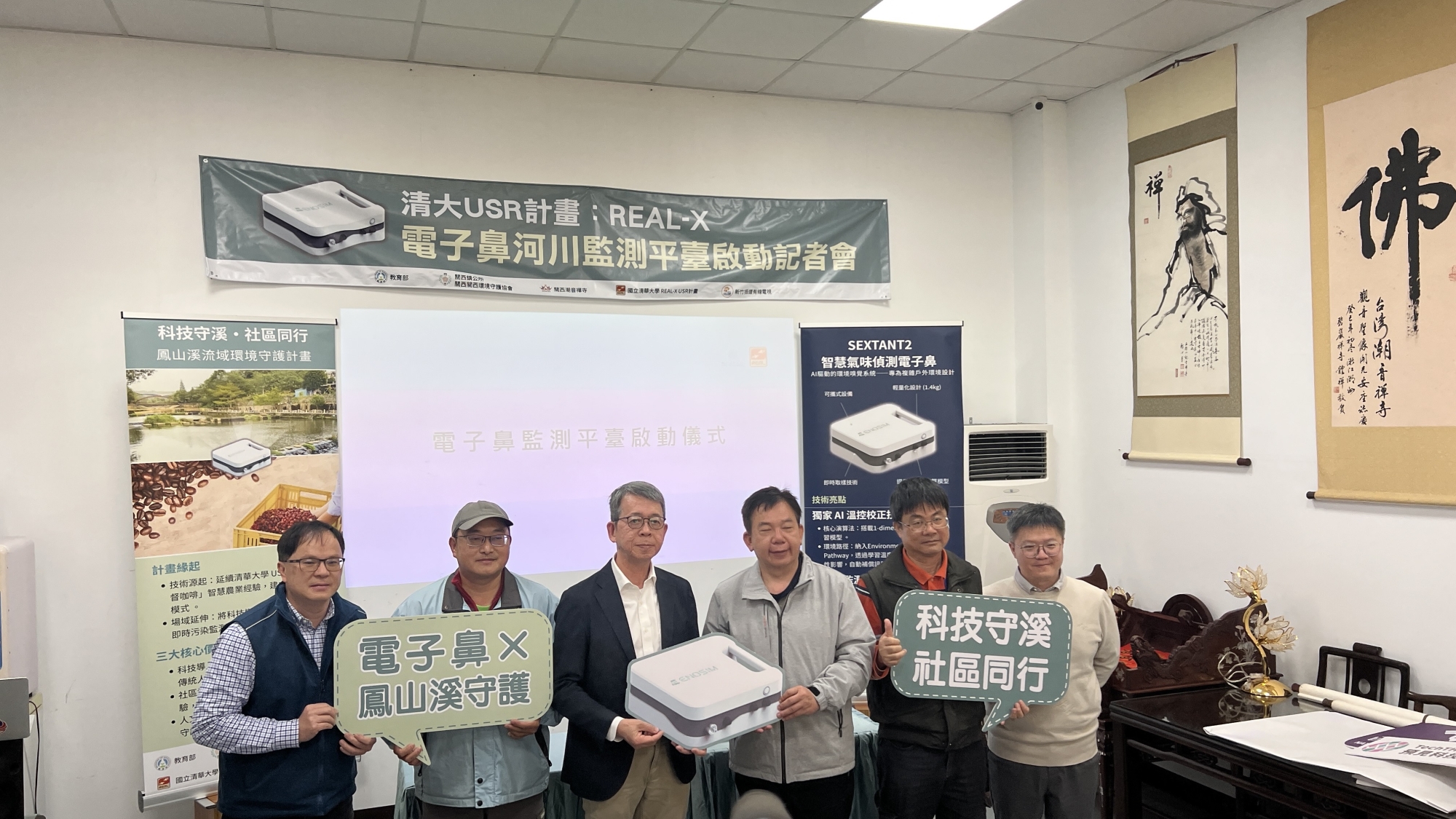 牛欄河曾受污染之苦,關西鎮長陳光彩希望記取教訓,大家共同守護河流。為回應河川污染即時監測與在地守護的需求,國立清華大學USR計畫團隊今天(2/11)舉辦「REAL-X電子鼻河川監測平臺啟動記者會」,正式對外宣布電子鼻技術導入河川場域進行監測應用,並完成行動宣示儀式。