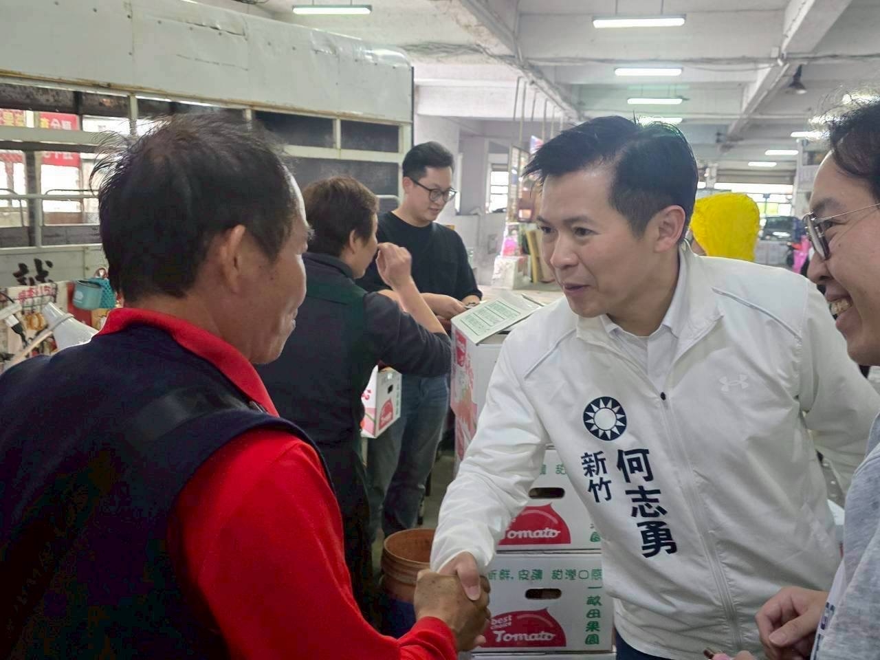 竹市長參選人何志勇,年前大菜市場拜早年,民主路戶外市場還沒走完、還沒進到建築物裡,紅包袋就全數發完。開工第一週,帶著滿滿誠意再上大菜市場,把上次沒走完的路、沒握到的手,一一補齊。
