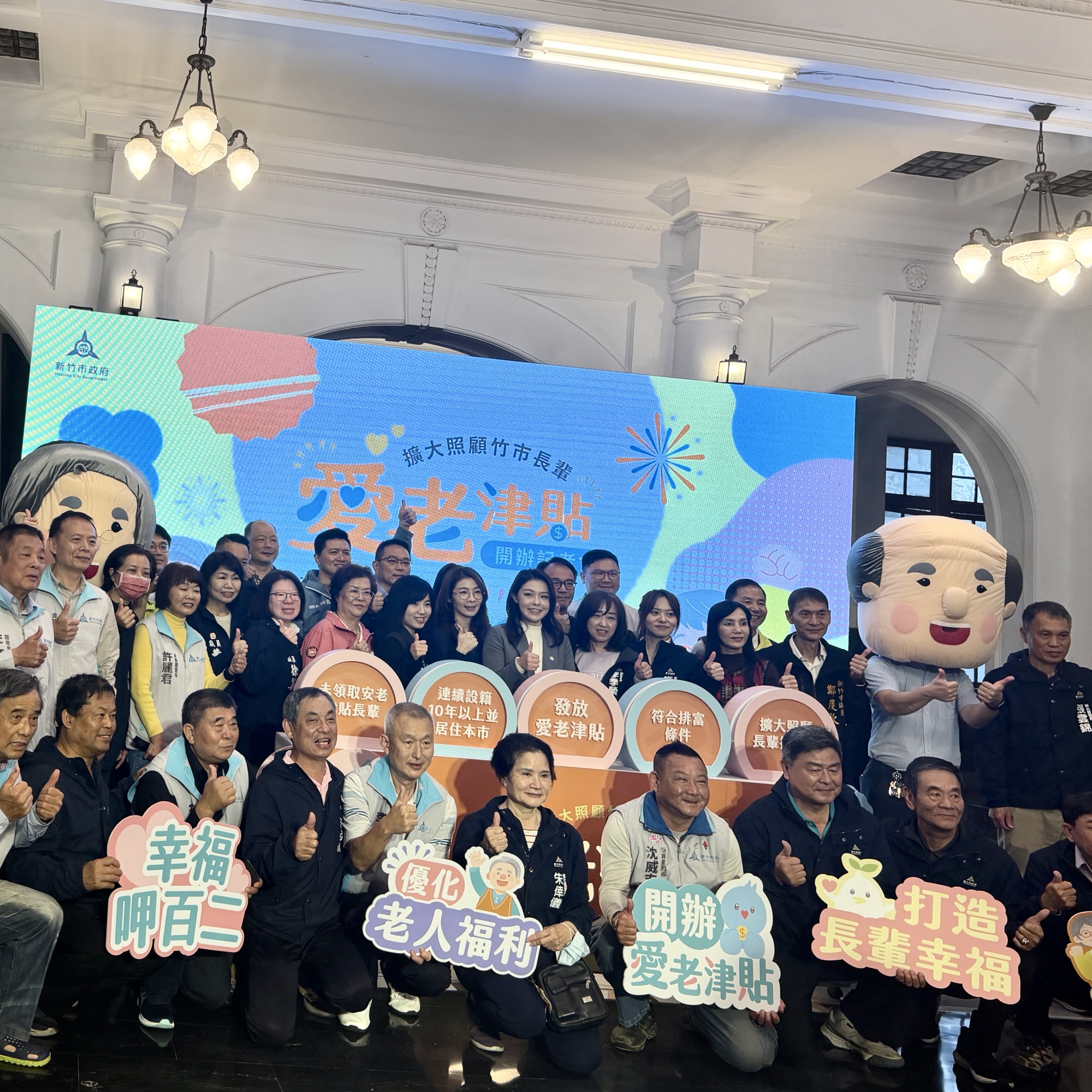 竹市政府今(27)日辦理愛老津貼開辦記者會,由市長高虹安宣布自今(115)年4月1日起針對未領取按月發放「安老津貼」,且截至申請日已連續設籍滿10年以上並符合排富條件的長輩,每人每年發放1萬元的「愛老津貼」,透過一系列措施讓長輩「樂活新竹市、幸福呷百二」,打造安居樂活的幸福友善城市。