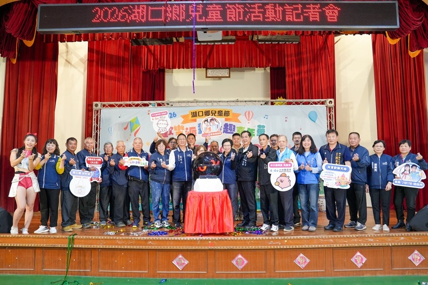 為了帶給孩子們一個難忘的假期,新竹縣湖口鄉公所將於 4 月 3 日至 4 月 4 日,在王爺壟停三、停四停車場盛大舉行「2026 湖口鄉兒童節-歡樂派對 童趣嘉年華」 。今(27)日於湖口鄉公所舉行記者會,由長安國小太鼓隊震撼開場、湖口鄉立幼兒園來精采的串場及特別邀請即將成真火舞團擔任記者會演出壓軸,並由湖口鄉長吳淑君與貴賓共同點亮「啟動魔球」,宣告這場為期兩天的兒童節歡樂派對正式展開 。