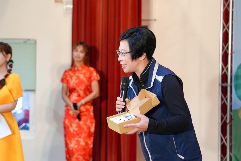 吳淑君(右)開心宣告兒童節歡樂派登場 圖∕湖口鄉公所