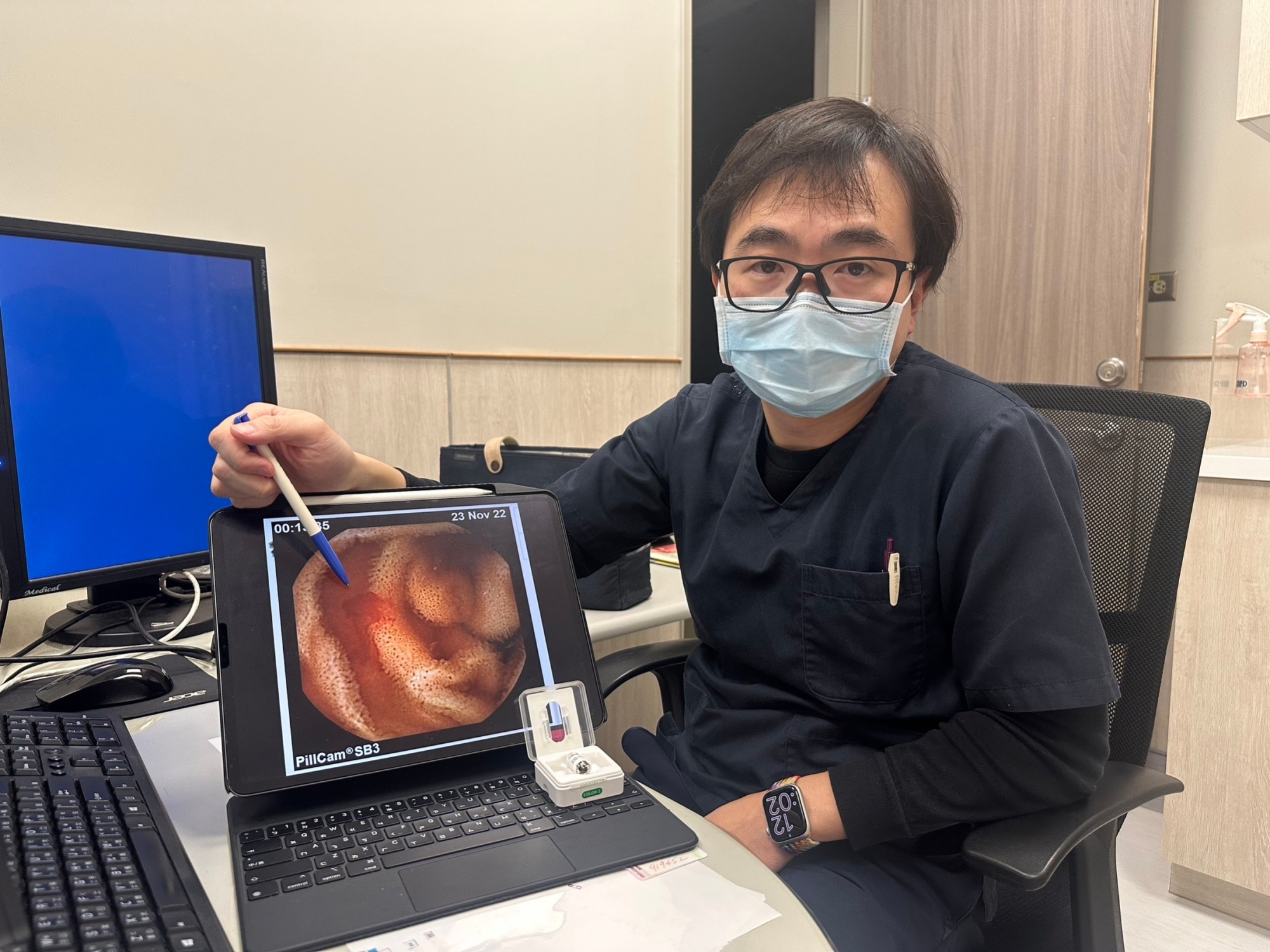 醫師范峻維以小腸膠囊內視鏡查出病因治療。 中醫大提供