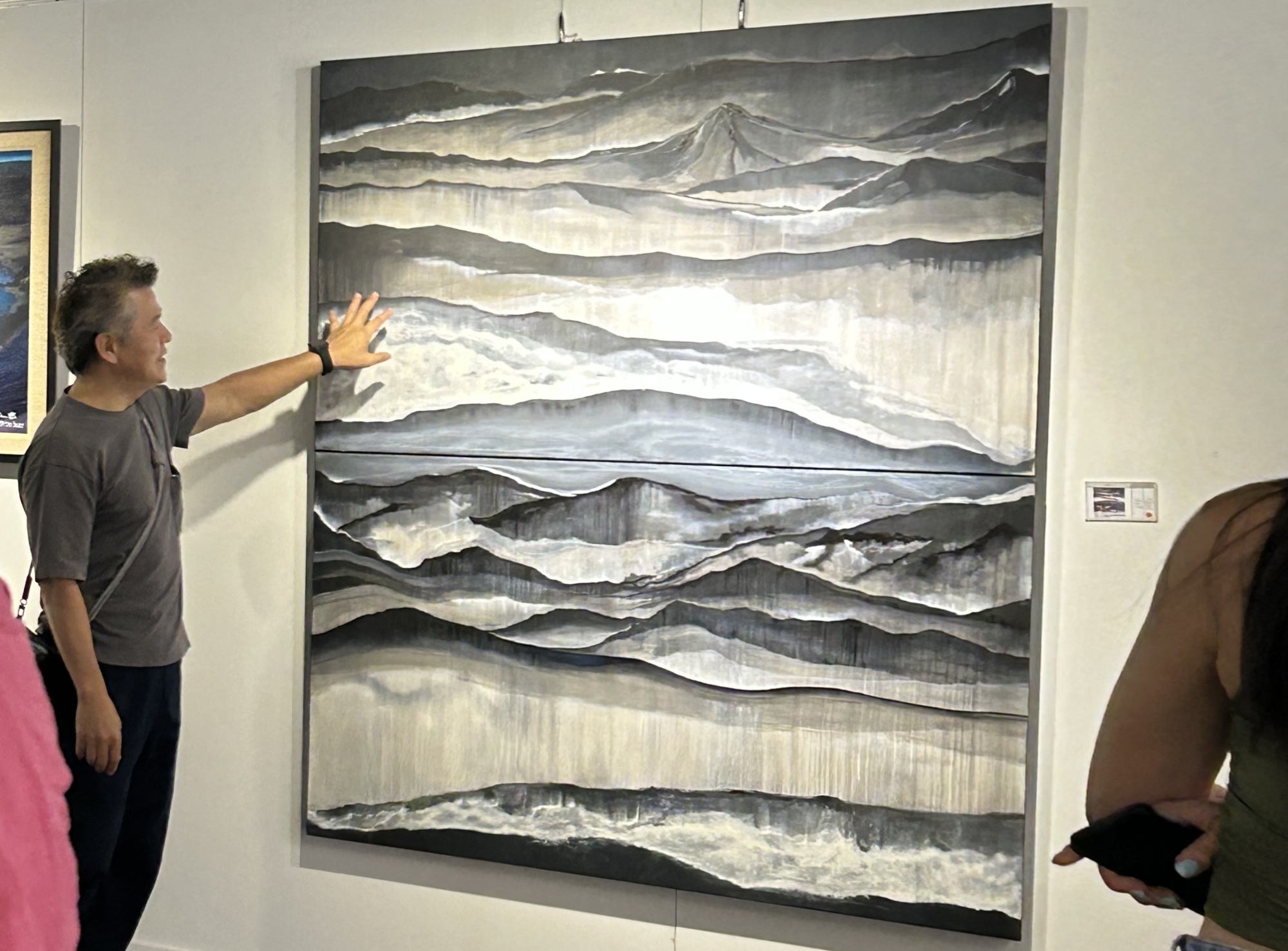 抽象系列:幾幅大型畫作都是用抽象來呈現、星河、台灣大山、山海境,這都是畫者爬山看海的意象記憶,加上長時期的冥想靜坐經驗也能激發出不同的靈感,而這部分的靈感也運用到抽象畫作裡,希望觀者在這些畫作前靜靜的欣賞後,並能閉上眼睛靜心的感受畫要告訴你的話。