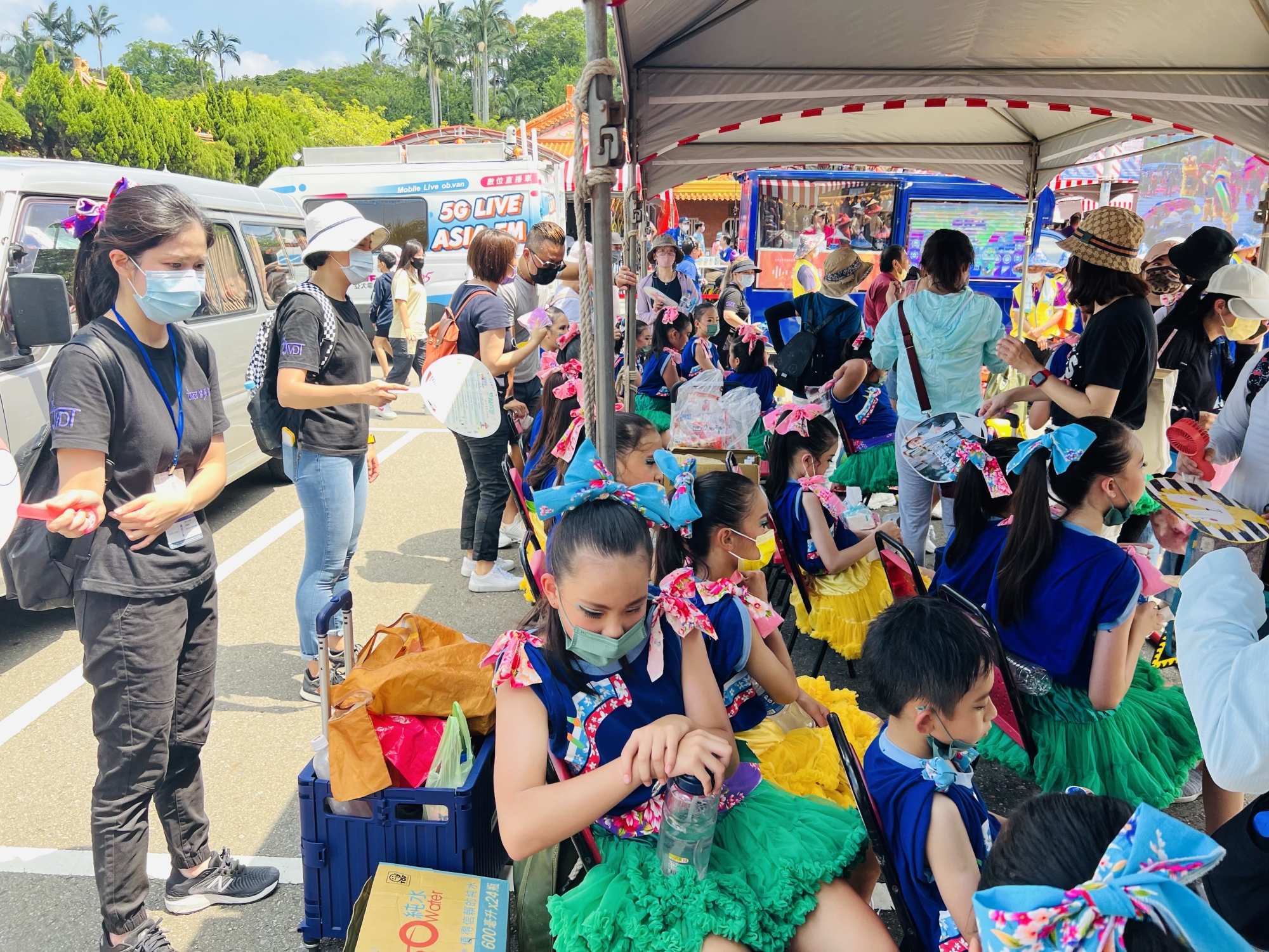 民祭會場艷陽高溫師長給表演小朋友們搧風降溫 何高祿攝