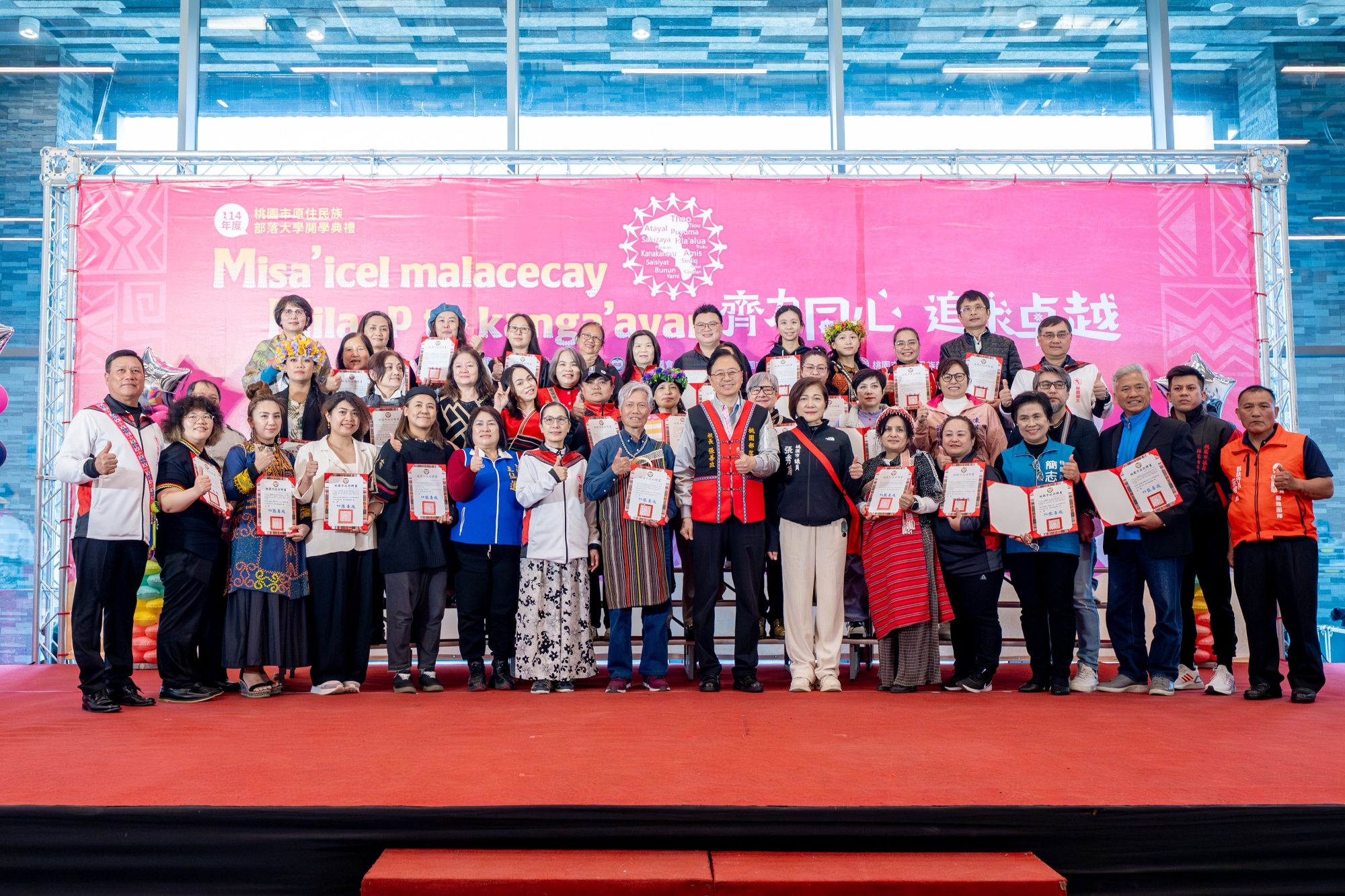 桃園市長張善政今(29)日上午前往大園區,出席「114年度桃園市原住民族部落大學開學典禮」。張市長表示,桃園的原住民朋友無論在學術發展或是運動競技領域皆有優異的表現,充分展現桃園多元發展實力,尤其本市原住民族部落大學甫榮獲「全國最績優部落大學」肯定,可謂桃園的驕傲,期許未來部落大學繼續努力,將本市部落大學發展得更加卓越。
