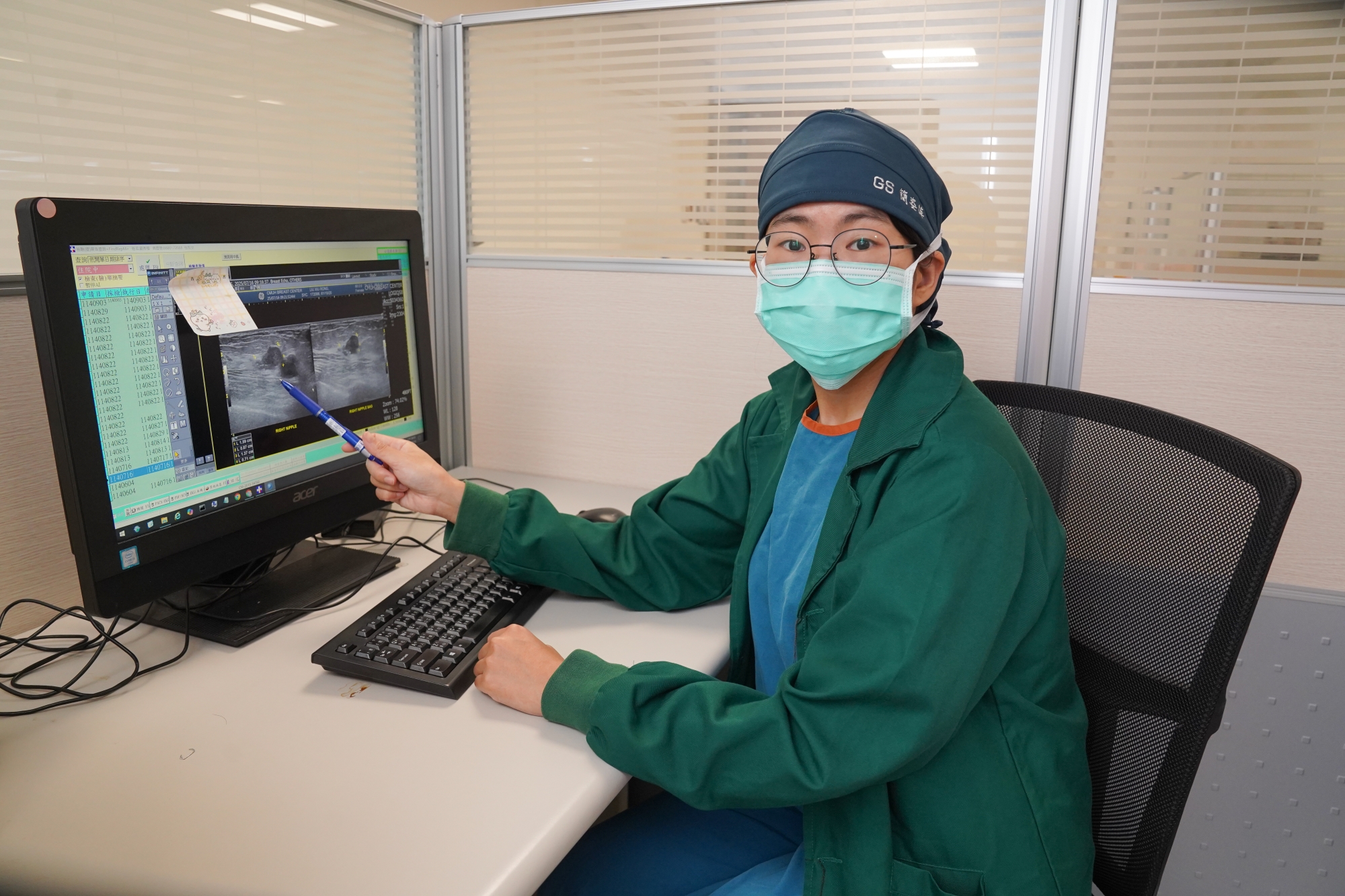 一名60歲婦人右側乳頭濕疹時好時壞、發紅滲液,並伴隨乳頭形狀改變,至皮膚科診所反覆就醫超過三個月仍未改善,最後求診於中國醫藥大學新竹附設醫院乳房外科簡姿萍醫師,醫療團隊即安排乳房超音波檢查,結果發現乳頭下方合併兩個邊緣不規則、部分模糊的腫瘤病灶,經穿刺切片確診為乳癌第二期。