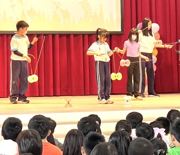 青草湖國小今(二)日歡慶兒童節活動,從熱鬧又有趣的歡樂才藝show開始!一大早,「街頭藝人嘉年華」show中,有震撼人心的太鼓表演、優美動聽的小提琴與鋼琴合奏,還有超酷的街舞、厲害的扯鈴和活力滿滿的韻律體操。小朋友們自信站上舞台,把平常努力練習的成果通通展現出來,現場掌聲不斷,氣氛超嗨!