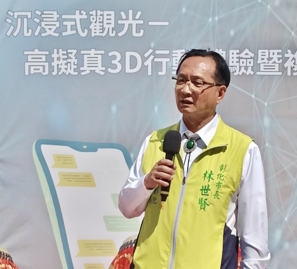 彰化市公所23日上午在市公所前廣場,辦理沉浸式觀光-「高擬真3D行動體驗暨複合性商圈」行動智慧應用商務服務。