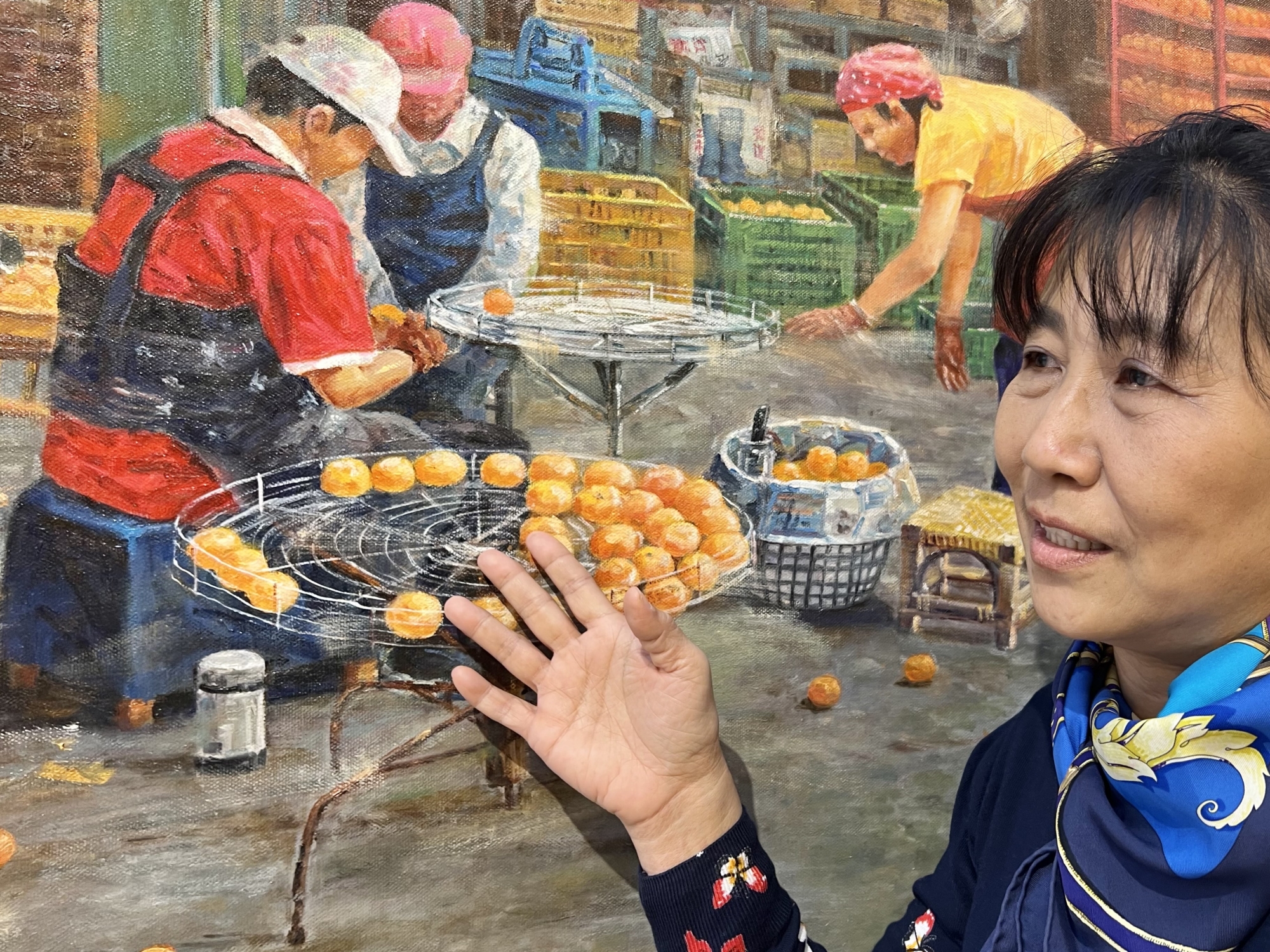 張懐容的柿餅傳統產業畫,前年榮獲宜蘭吳沙文藝獎金獎 何高祿攝