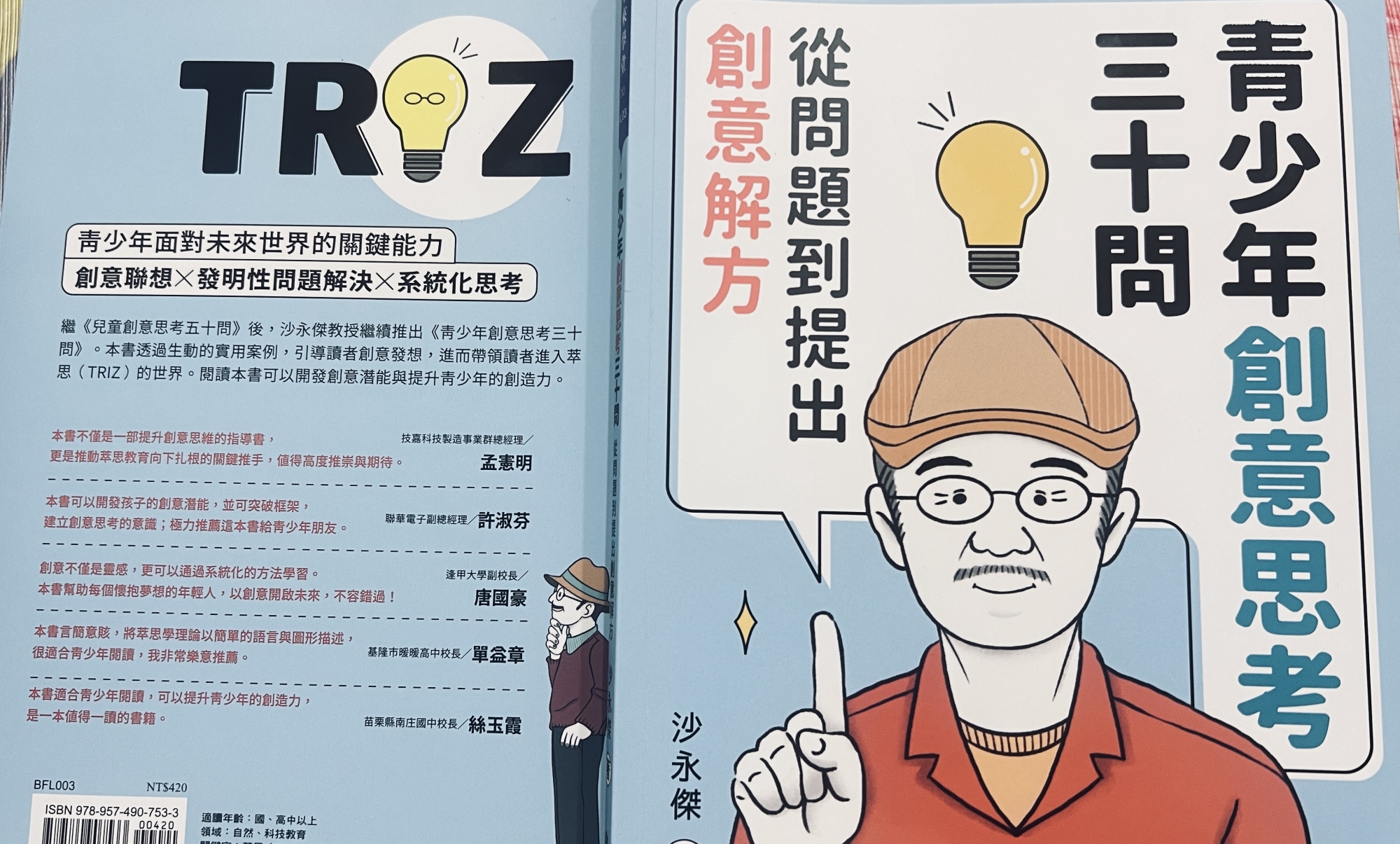 沙永傑教授出版《青少年創意思考三十問》一書,該書配合青少年的知識領域,以問句形式呈現創意發想的方向,言簡意賅,並輔以生活上的實例,說明創意問句的應用,易學易懂。閱讀該書對提升青少年的創造力,很有幫助。