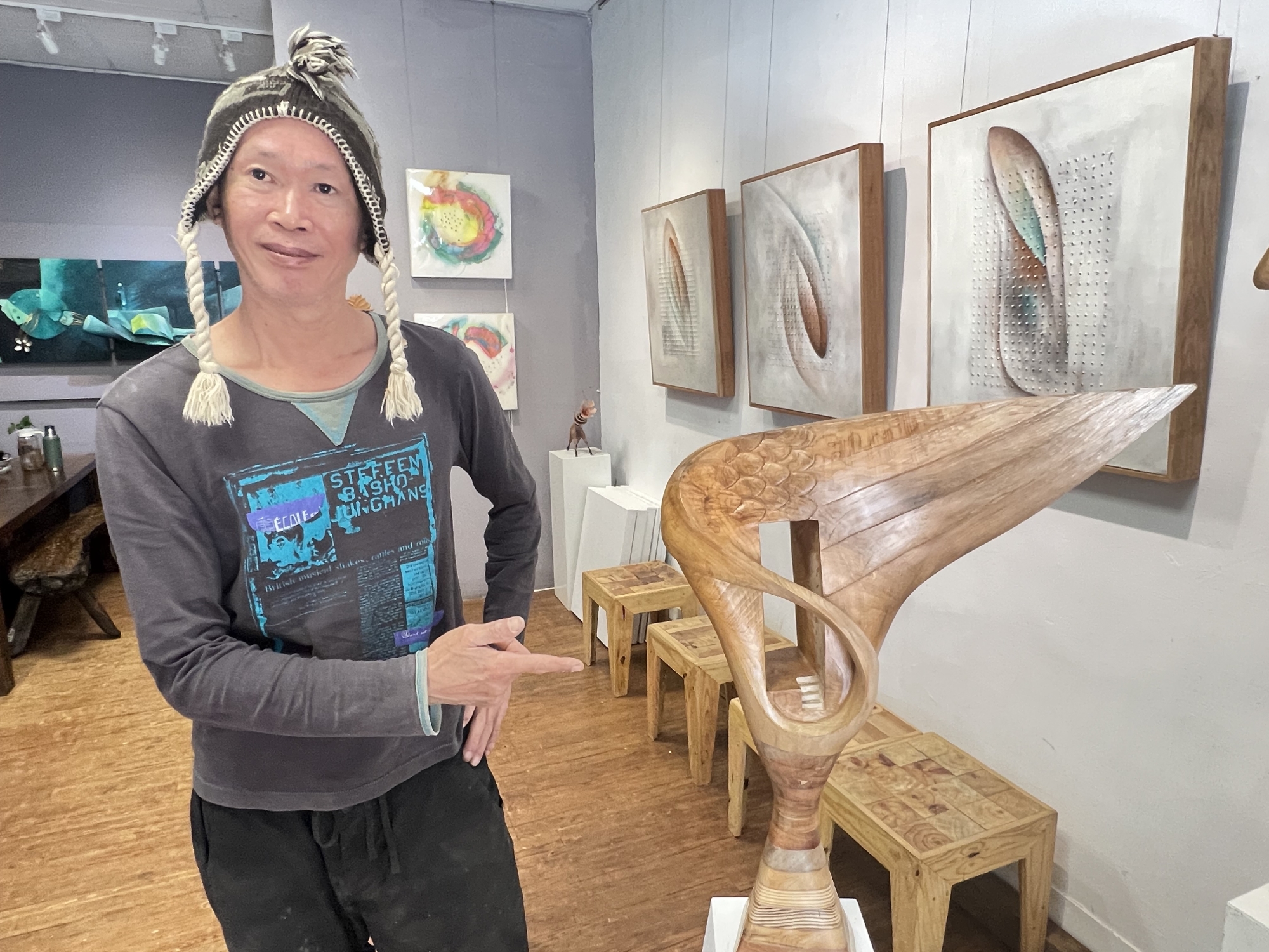 走入他的生活圈子,無論軟、硬體都是藝術,討論創作總是輕聲細語,即使意見相左,也沒有疾言厲色。他的門把和起居桌椅生活用品,都出自自己雙手創作,盡是藝術品,到莊志輝家作客,就好像進入藝術殿堂,牆壁上和室內立牌,皆為藝術品。