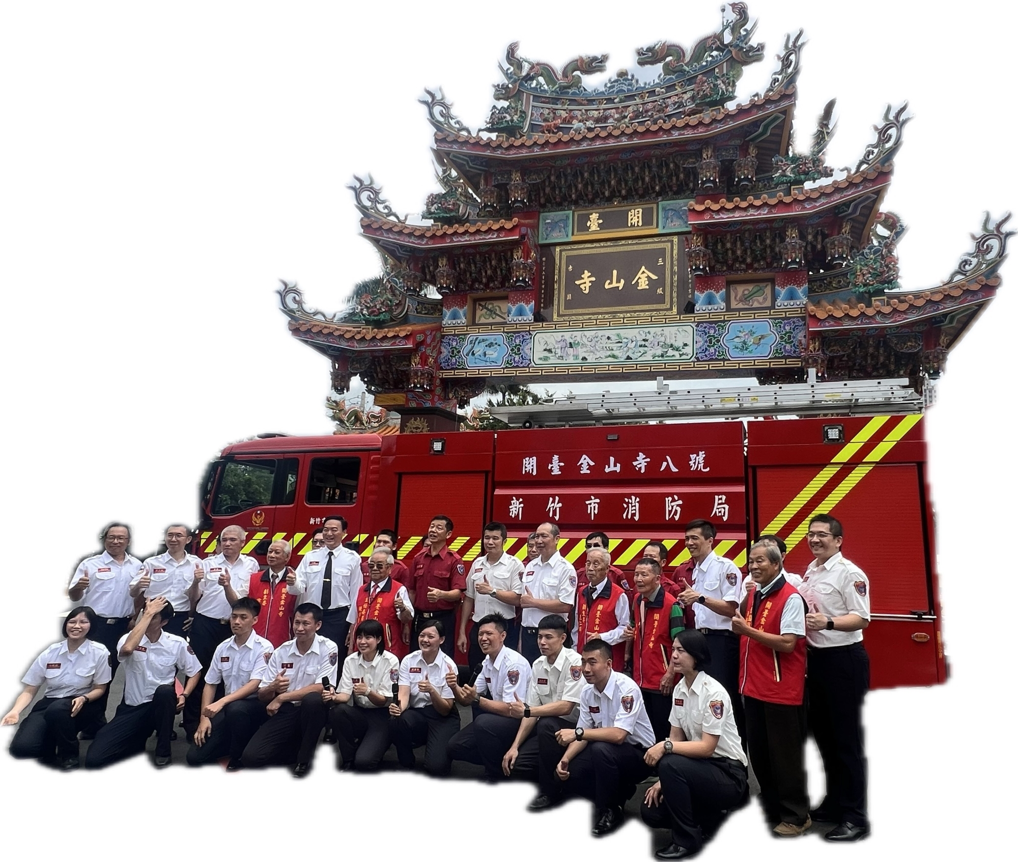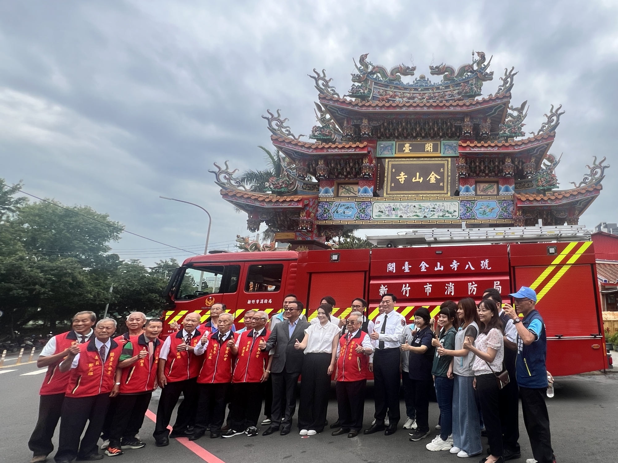 饒主委表示,開臺金山寺長期致力社會公益,此次捐贈化學消防車回饋鄉里,守護園區企業與民眾安全,期望發揮拋磚引玉之效,吸引更多企業、團體或善心人士投入公益,共創溫暖的竹市。