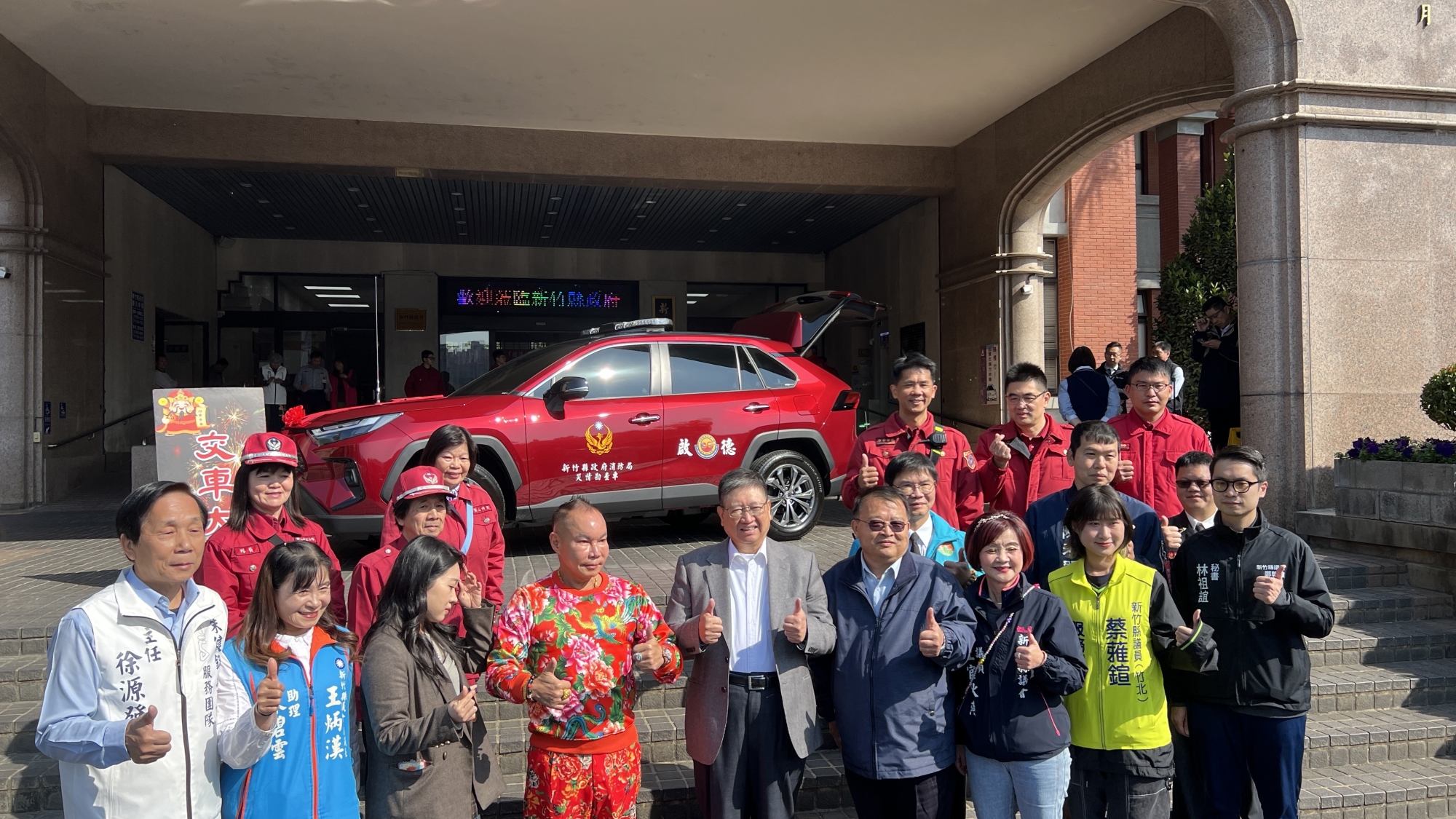 新竹縣消防局今天於新竹縣政府一樓大廳舉辦消防救災車捐贈啟用典禮,新竹縣長楊文科到場主持致謝,「啟德機械起重工程股份有限公司」董事長胡漢龑先生親自出席,現場亦有新竹縣議員、民意代表、消防同仁到場觀禮。楊縣長非常感謝胡董事長添購車輛贈予消防局第二大隊,讓消防救災工作更添利器,民眾生命財產更有保障。