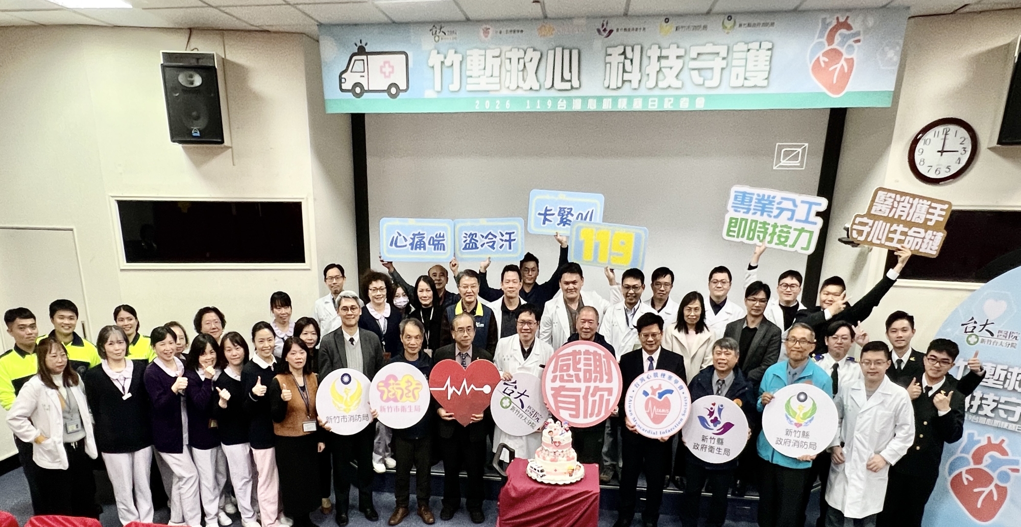 響應1月19日「119台灣心肌梗塞日」,為提升民眾對心肌梗塞的警覺與應變能力,新竹臺大分院攜手台灣心肌梗塞學會與中華民國心臟基金會舉辦「竹塹救心,科技守護-2026119台灣心肌梗塞日記者會」。