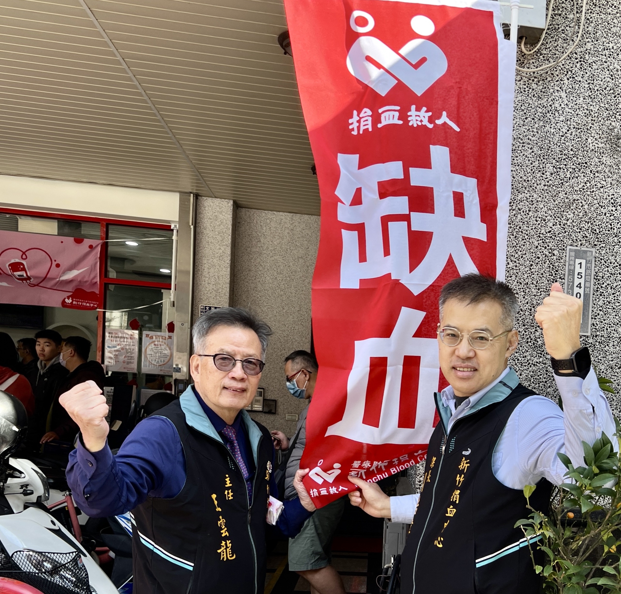 新竹捐血中心主任王雲龍,感謝今日所有捐出熱血響應的消防、義消同仁及市民朋友們,展現珍貴熱忱貢獻愛心,為血庫化解嚴重旱象如逢甘霖,可以維持正常供血。