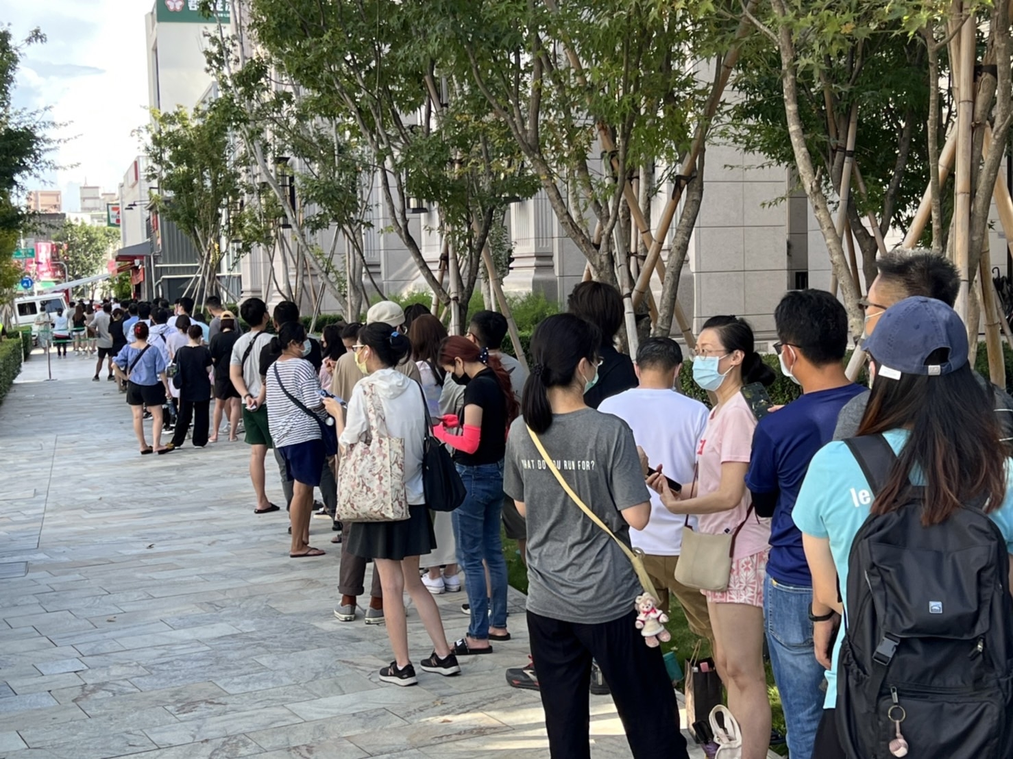 只不過這樣完全超過一個路口的排隊場景,也讓路過的人們紛紛投以好奇的眼光。