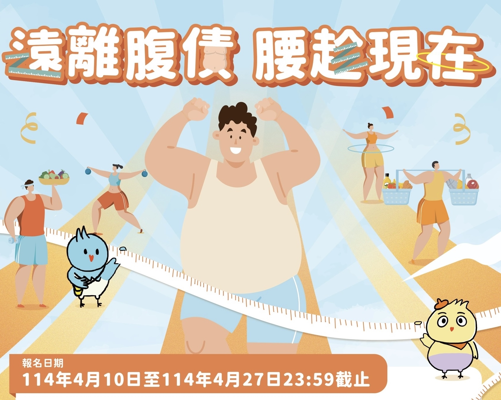 衛生局說,「遠離腹債,腰趁現在」瘦腰活動將於4月10日至7月20日舉行,採團隊競賽方式進行,分為政府機關組、職場組及民眾組,每組限額30隊,每隊5人,共計90隊,報名額滿為止,期盼透過團隊互助,讓瘦腰不再是孤軍奮戰,而是一場攜手並進的蛻變之旅。
