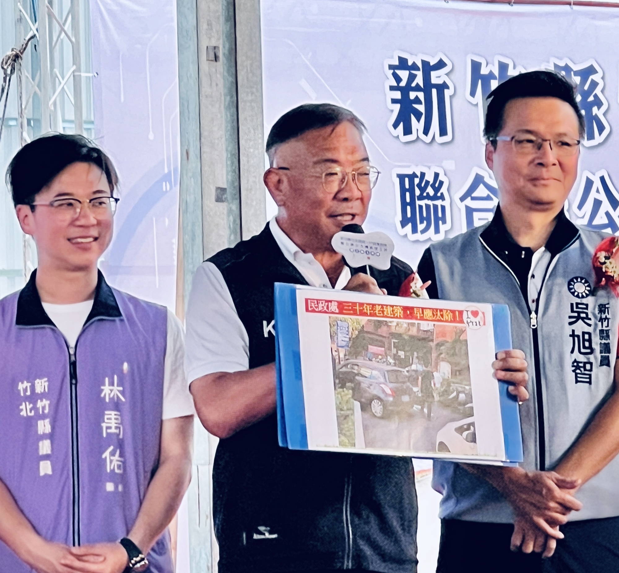 竹北戶政辦公大樓老舊地窄,難以跟隨人口快速成長和時代腳步,地方人士和民代年年喊叫,爭取易地更新提高服務品質,其中縣議員陳凱榮多次大動作發起促成更新聲浪,今(30日) 下鏟開工典禮,特別空出三分鐘演講時間,讓陳凱榮大鳴大放舒壓。