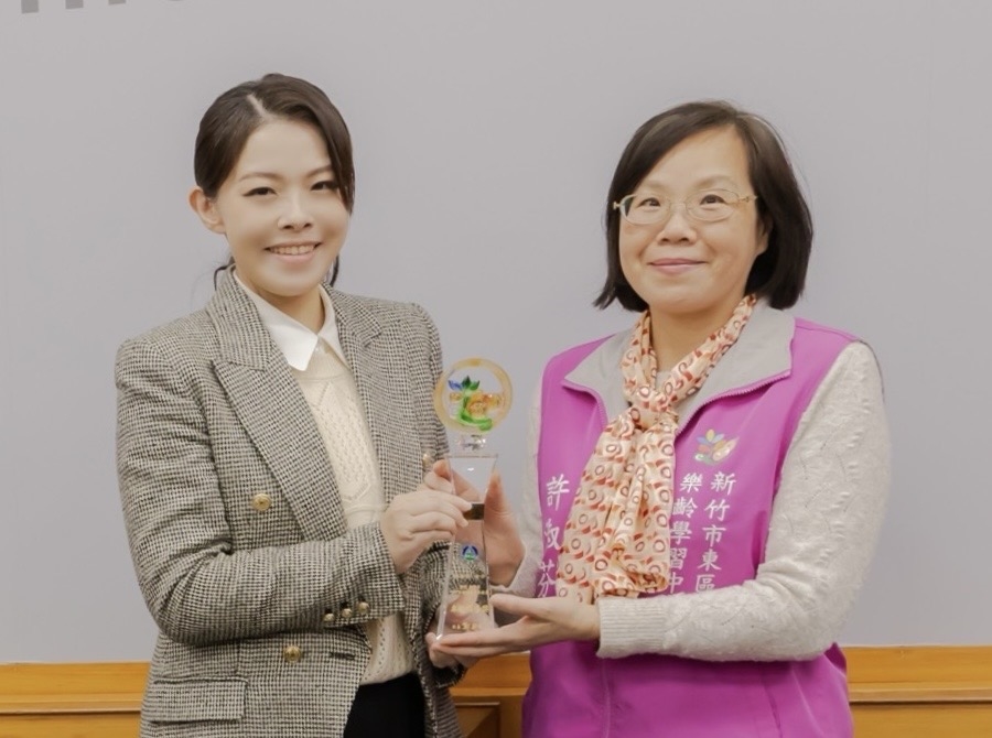 竹市長高虹安公開表揚,由衷感謝東區樂齡學習中心協助市府推動高齡教育不遺餘力,同時賀喜並感謝許淑芬女士及楊玉雯女士的無私奉獻與長期付出。