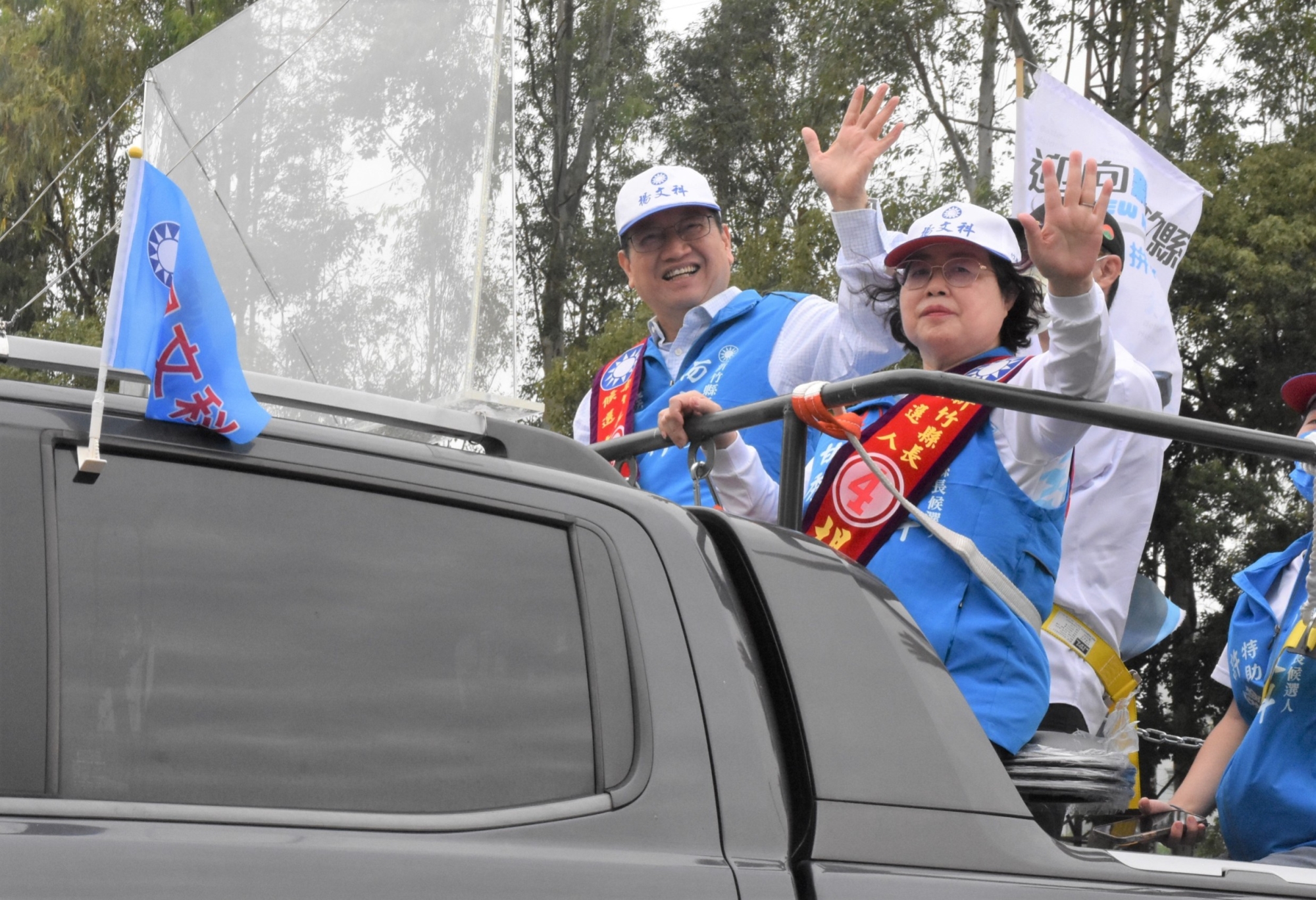 新竹縣連任縣長楊文科甘秀美夫婦開心 謝票 何高祿攝