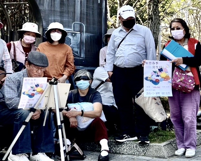 新竹寫生趙小寶(左四)的粉絲包括河畔畫會理事長彭碧鈴(右) 何高祿攝